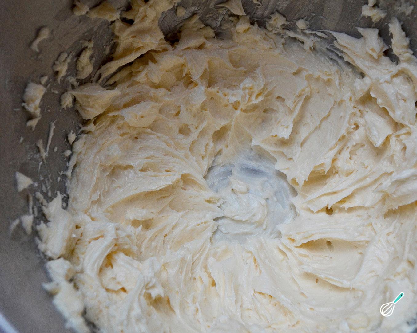 Bata o açúcar com a manteiga, de preferência usando uma batedeira, até obter um creme. Adicione o ovo e volte a bater.