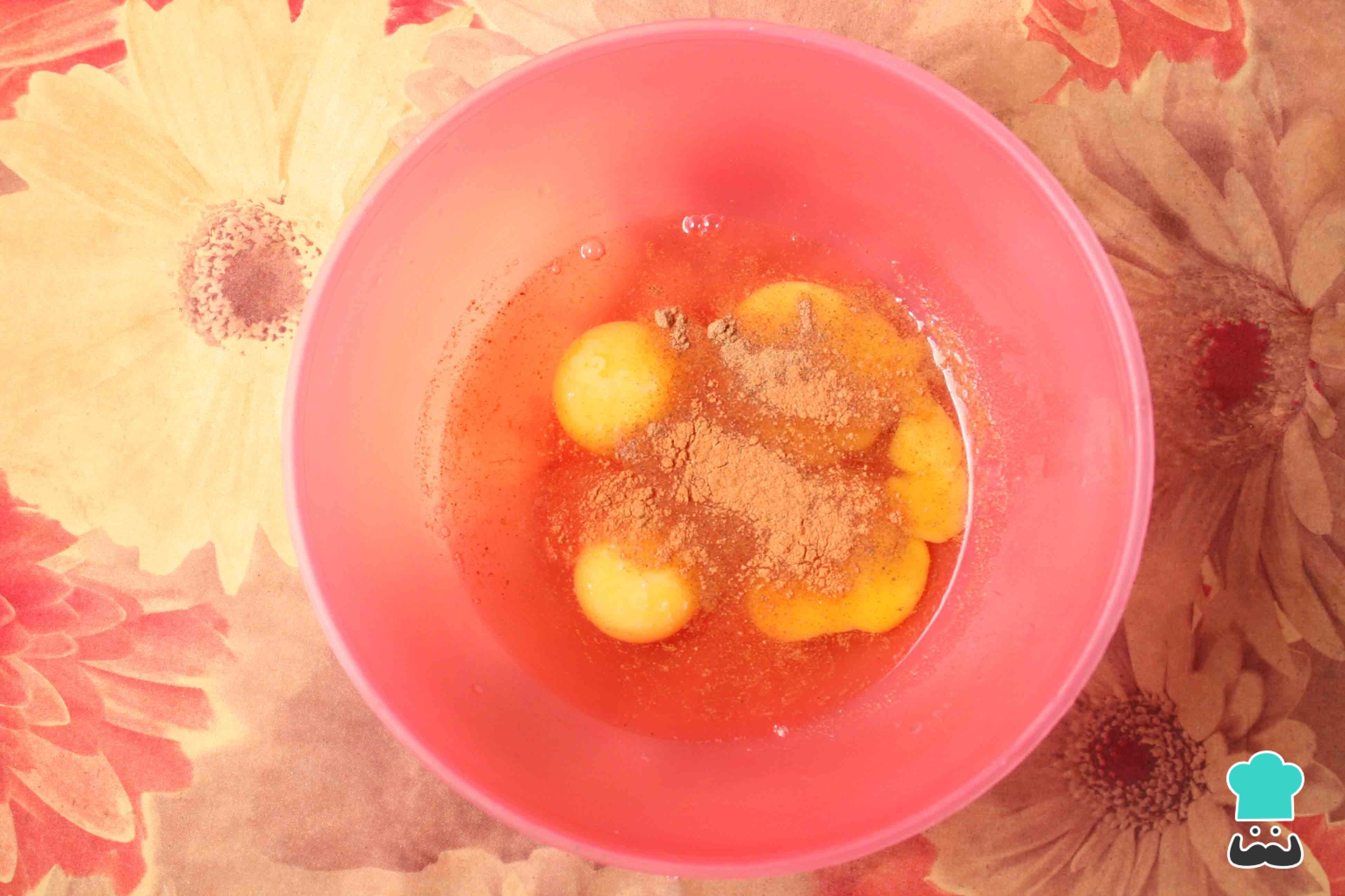 Coloque os ovos em um bowl, acrescente a canela, a noz moscada e o sal e bata até misturar. Reserve.