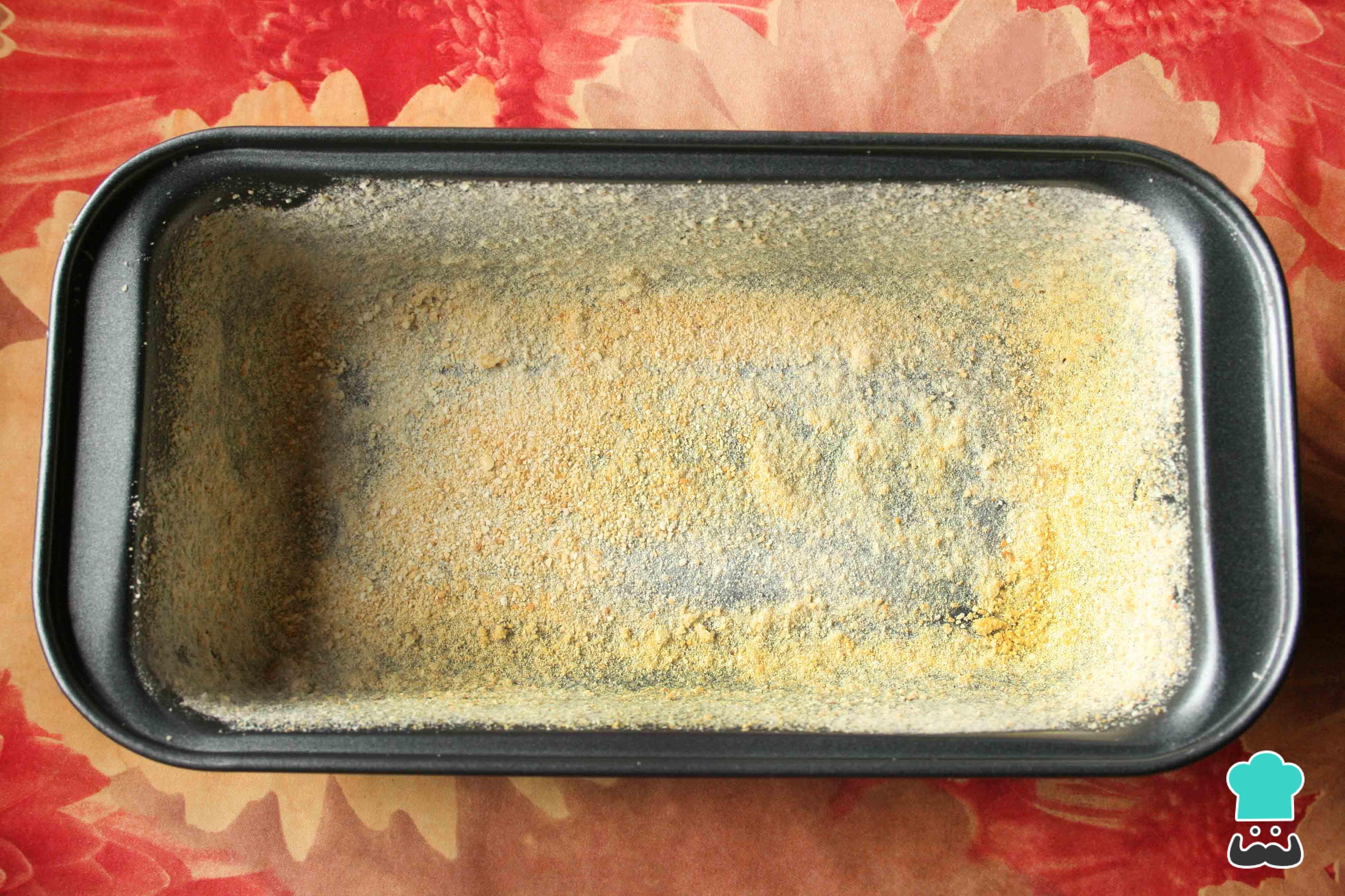 Unte a forma de bolo e polvilhe a farinha de rosca nela.
