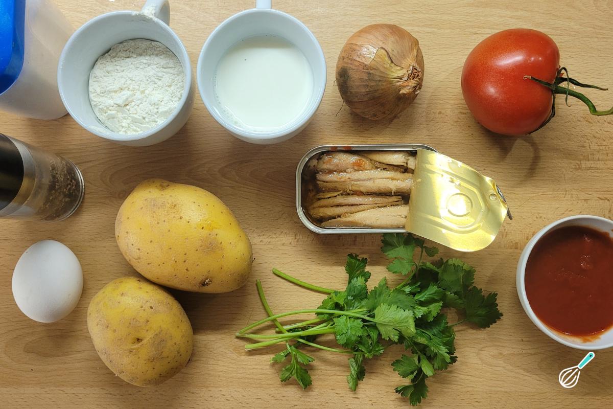 Separe os ingredientes para fazer sua torta de batata com sardinha.