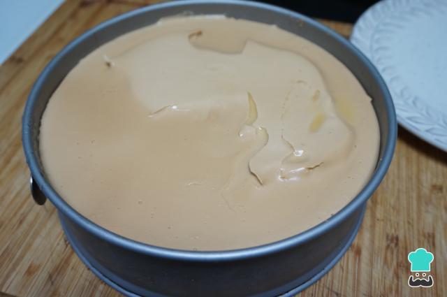 Verta o creme na forma da torta e devolva à geladeira, desta vez por 4-5 horas ou até firmar
