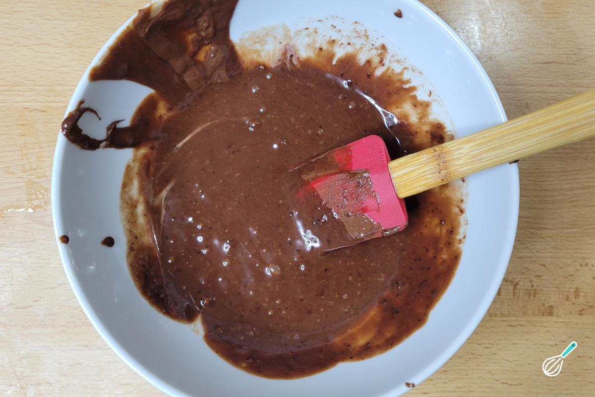 Derreta o chocolate em banho maria ou no micro-ondas. Misture o creme de leite até ter uma mistura homogênea.