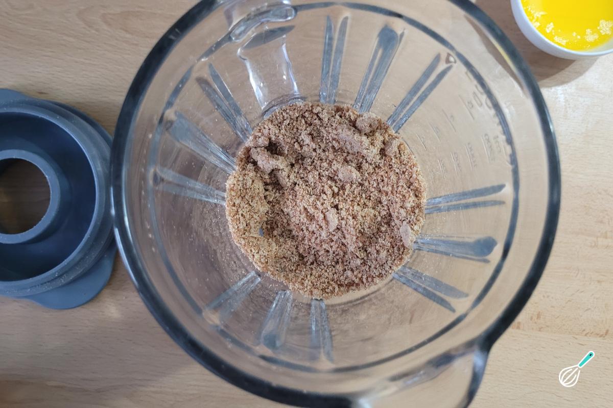 Comece fazendo a base da torta triturando os biscoitos no liquidificador ou processador. Se preferir, coloque os biscoitos em um saco e quebre com um rolo.