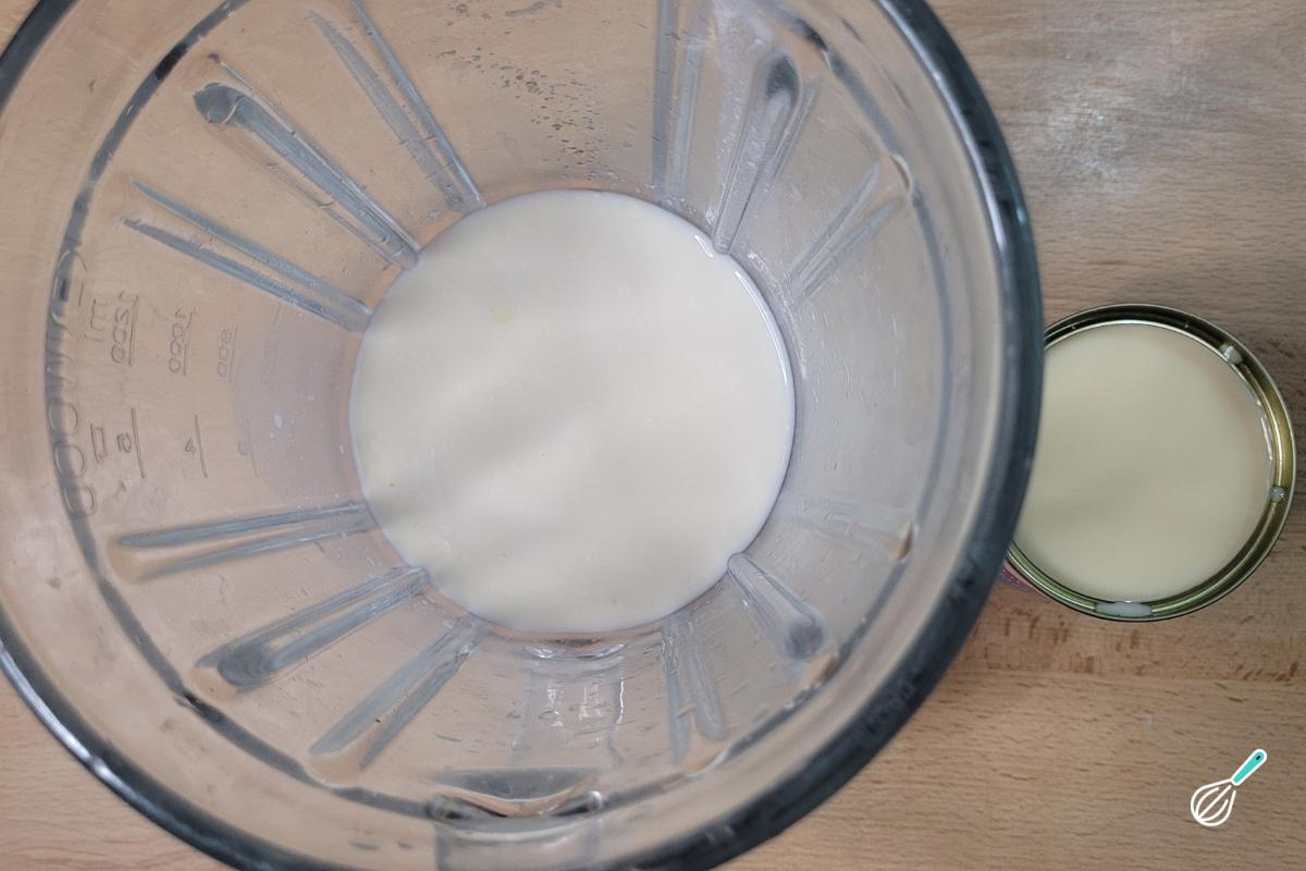 No liquidificador, adicione o creme de leite, o leite condensado e a gelatina hidratada e bata até ter uma massa homogênea.