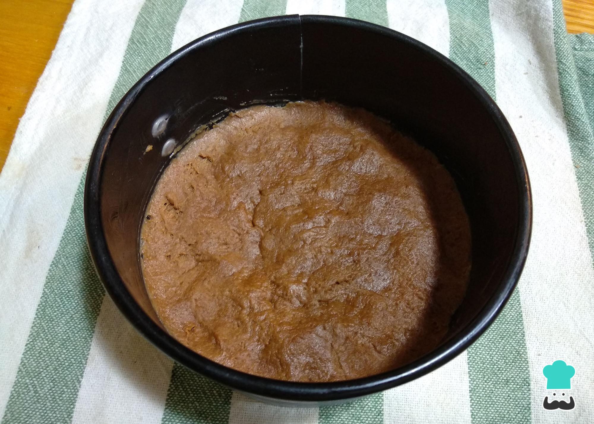 Unte com manteiga uma forma de fundo amovível e, com os dedos, abra a massa anterior apenas no fundo (não nas laterais). Alise e pique com um garfo. Coloque no forno pré-aquecido a 180ºC e asse por cerca de 15 minutos ou até ficar firme.