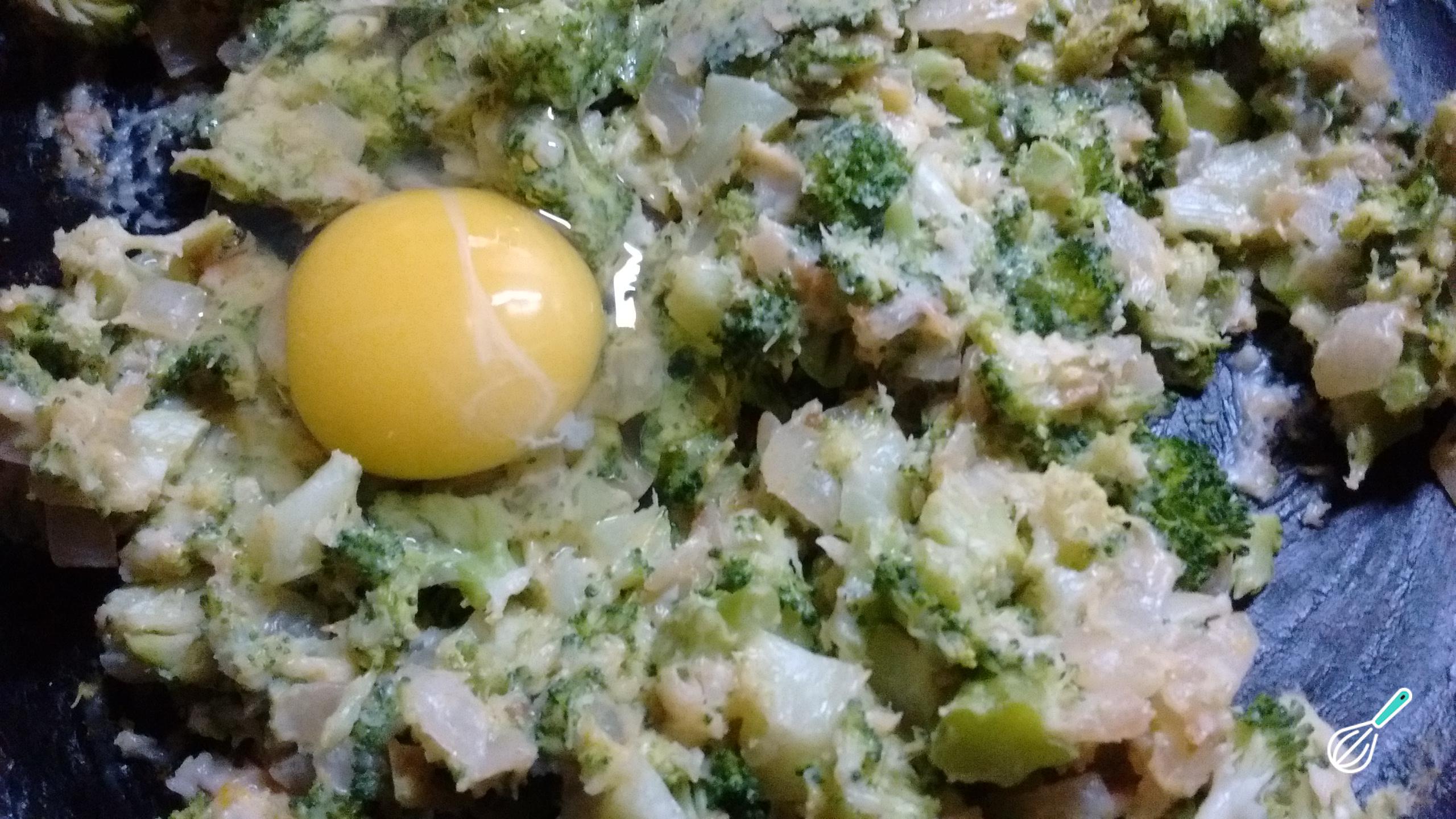 Pique os brócolos e junte ao preparado anterior, deixe arrefecer.