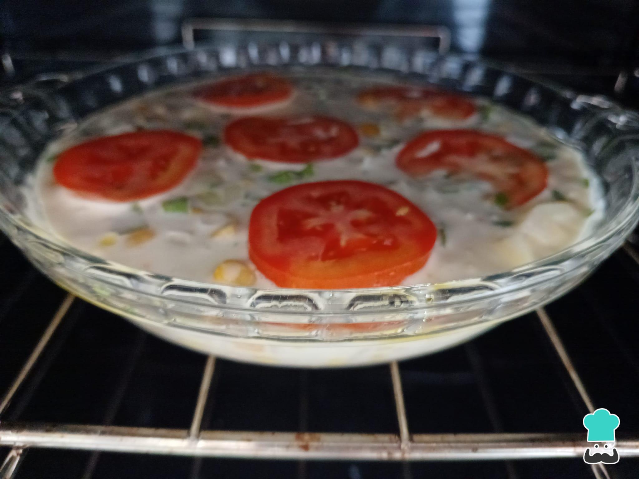 Asse em forno preaquecido a 200 graus por aproximadamente 30 minutos ou até que a massa fique mais firme e levemente corada.