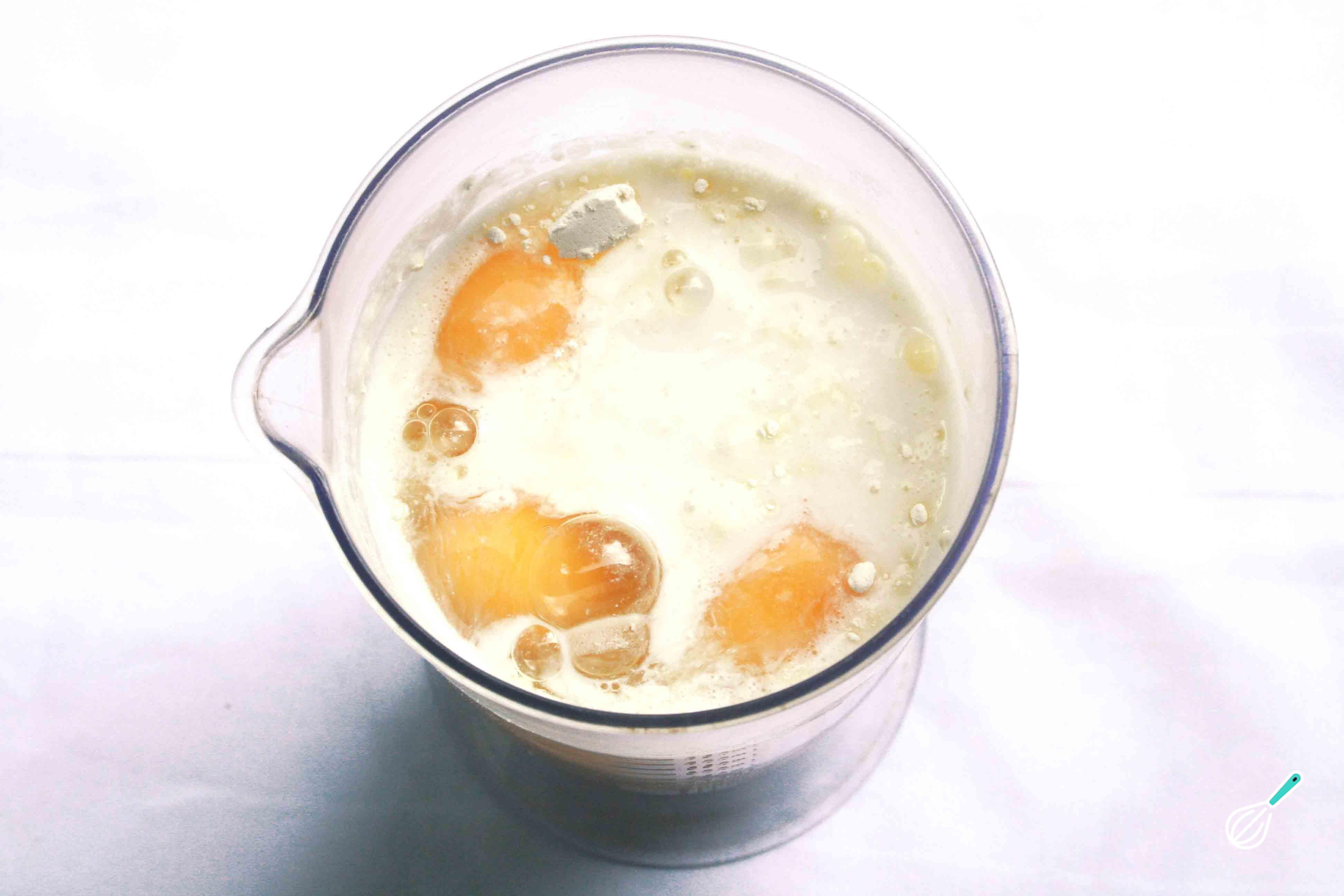 No liquidificador bata todos os ingredientes da torta de coco até conseguir uma massa homogênea, sem grumos.