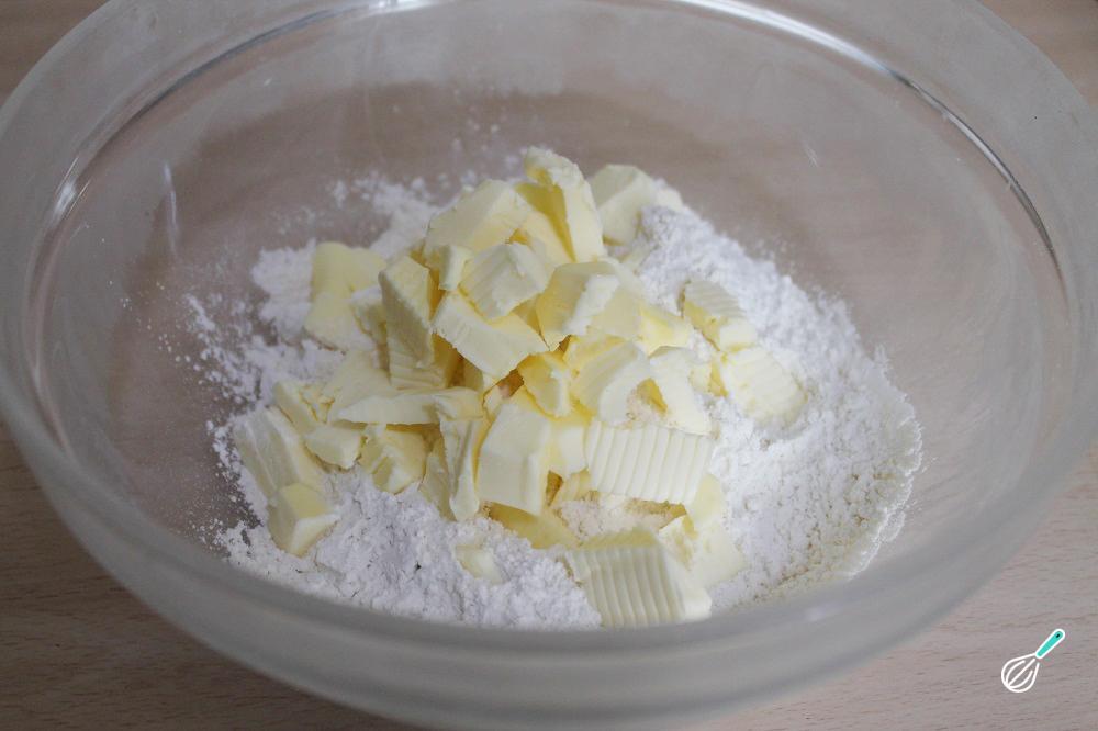 Dica: Preaqueça o forno nos 180ºC (forno médio). É importante usar manteiga gelada e não derreta nem margarina, caso contrário a massa ficará mole demais.