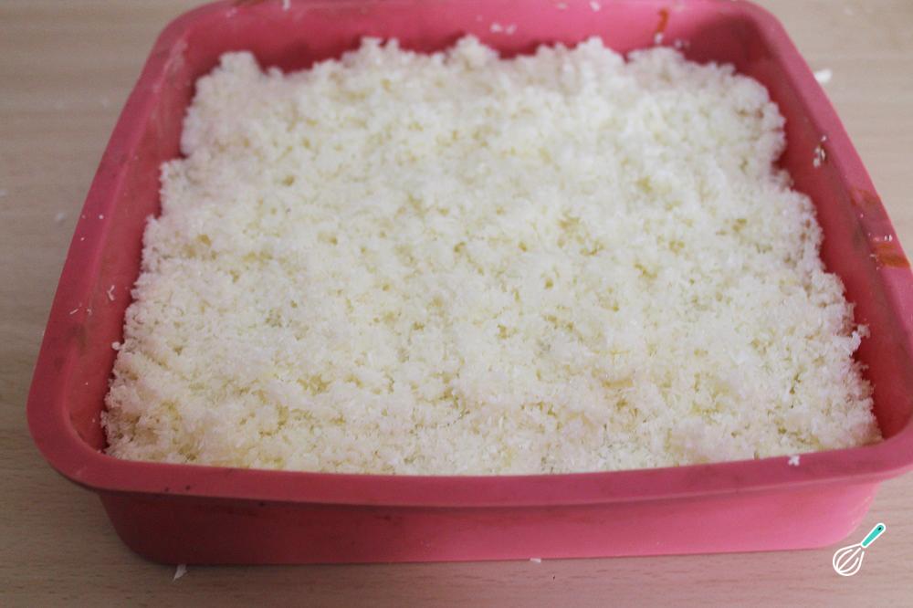 Espalhe toda essa cocada argentina sobre o doce de leite na forma da torta e devolva ao forno, desta vez por 20-30 minutos a 180ºC ou até dourar.