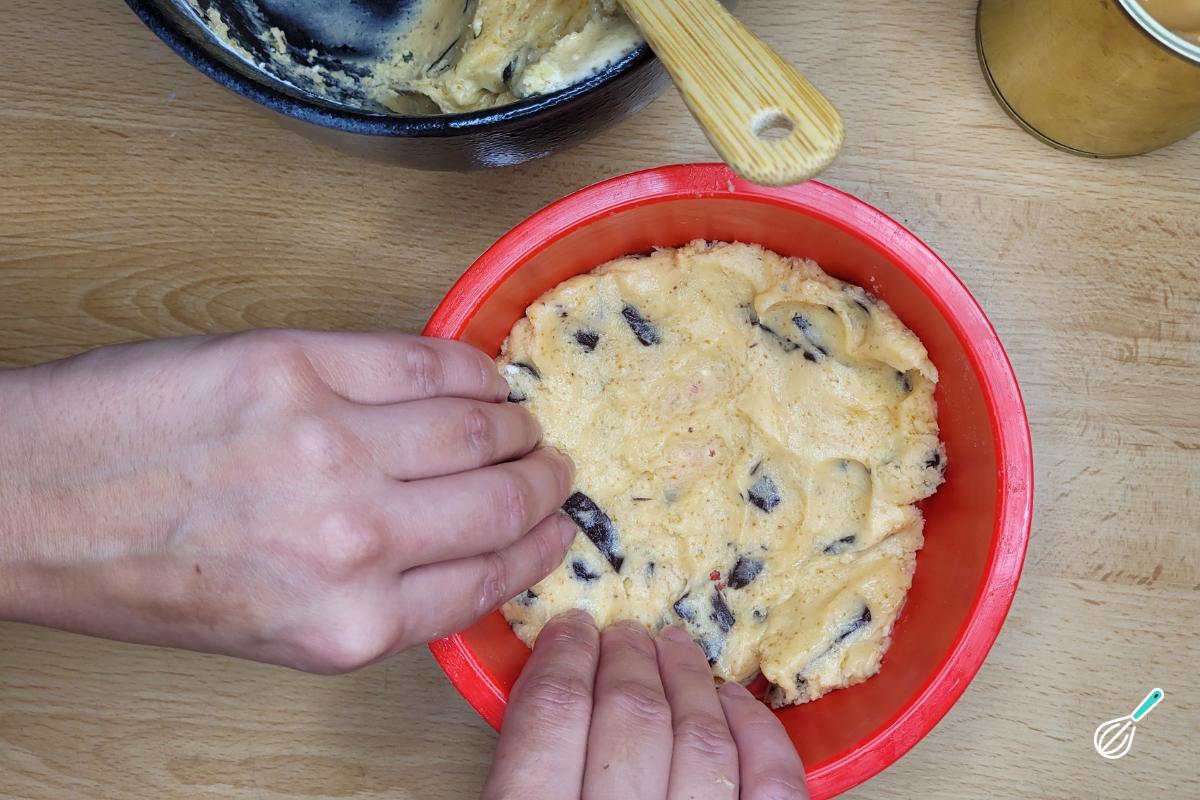A massa fica mais "pesada", exatamente como uma massa de cookie, e não de bolo.