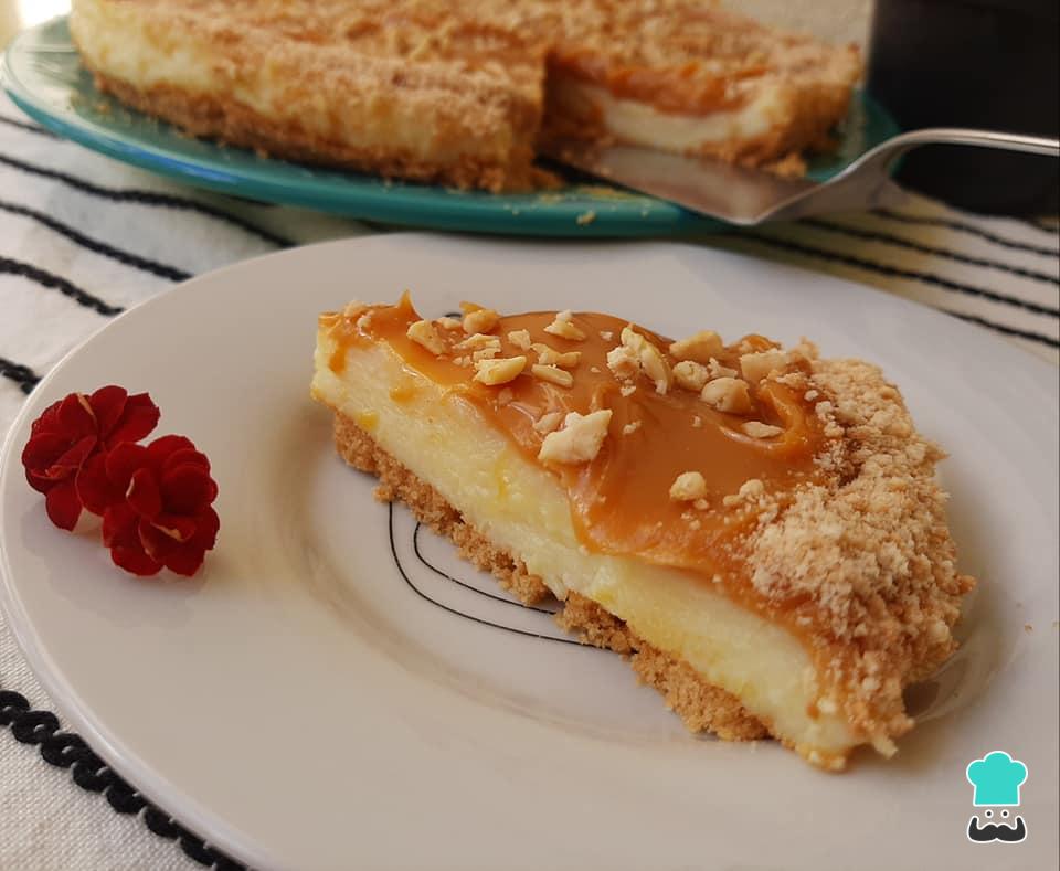 Bateu aquela vontade de preparar uma sobremesa perfeita? Que tal uma sobremesa deliciosa que tem como base uma massa feita com bolacha de maizena e manteiga? Você vai ver que o recheio da torta é de creme feito com leite condensado, gemas e leite integral - e para finalizar uma cobertura generosa de doce de leite, decorada com castanhas de caju trituradas!