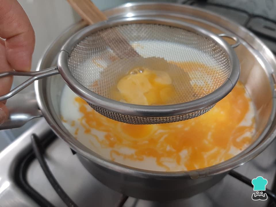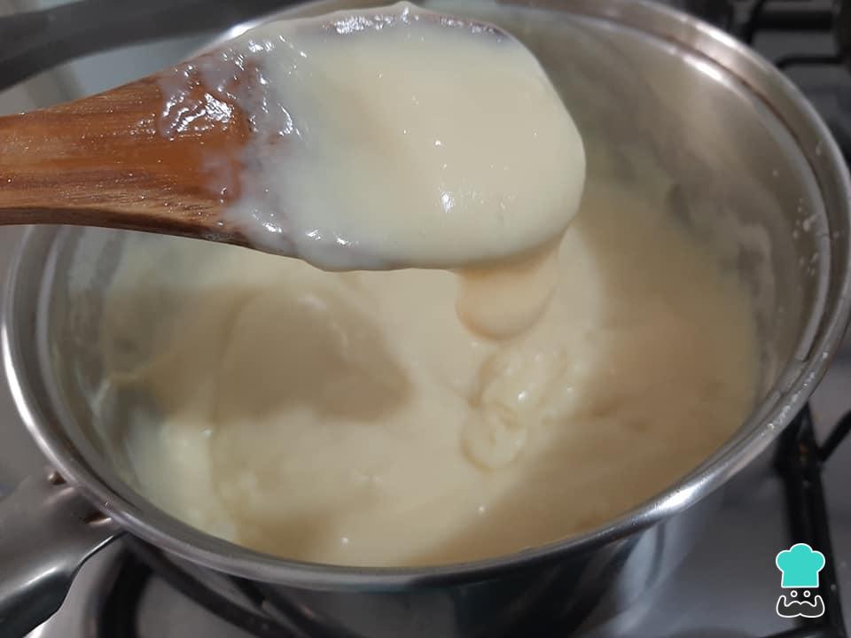 Cozinhe o creme até engrossar levemente (como mostra a foto abaixo), até ficar com consistência de mingau.