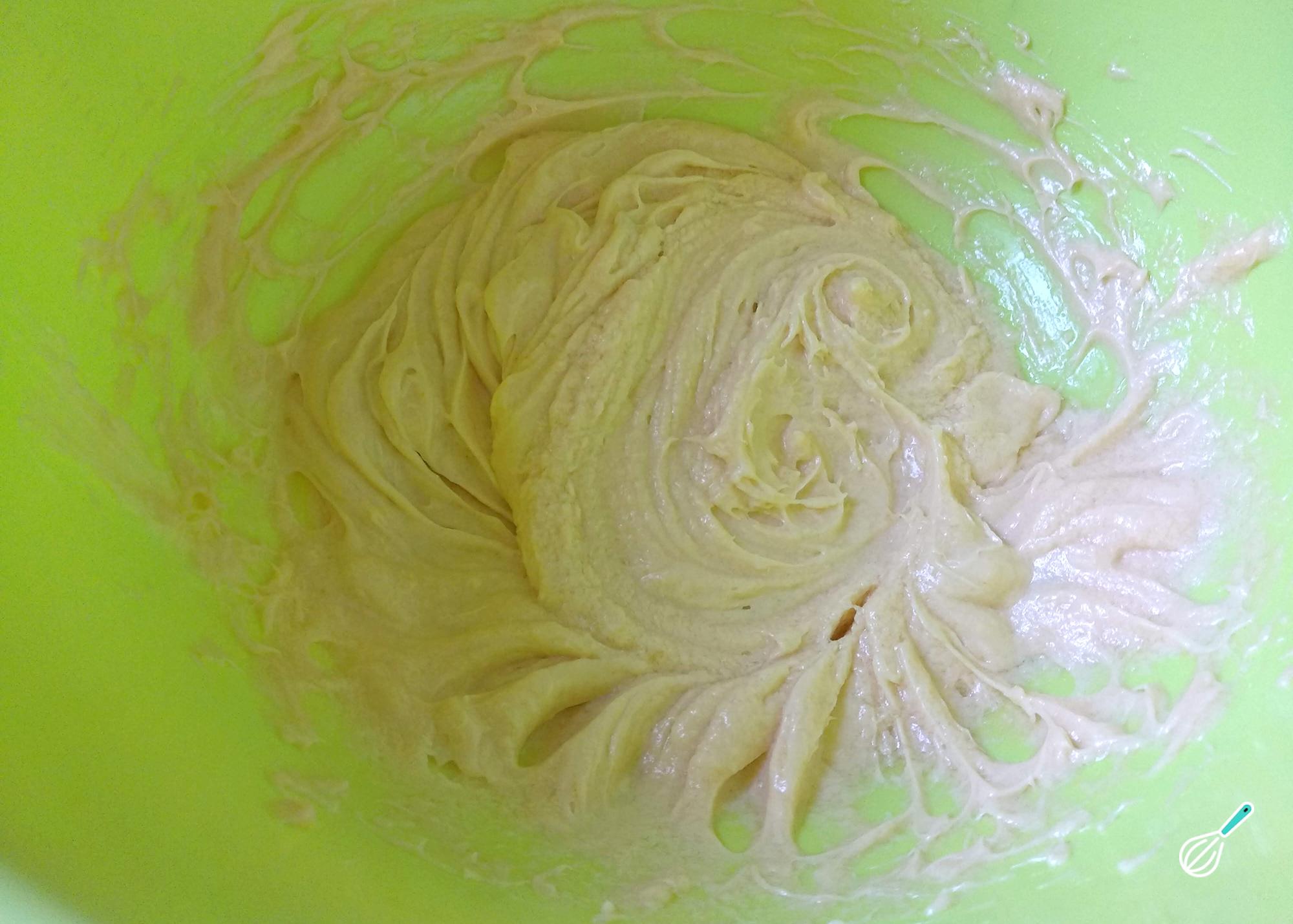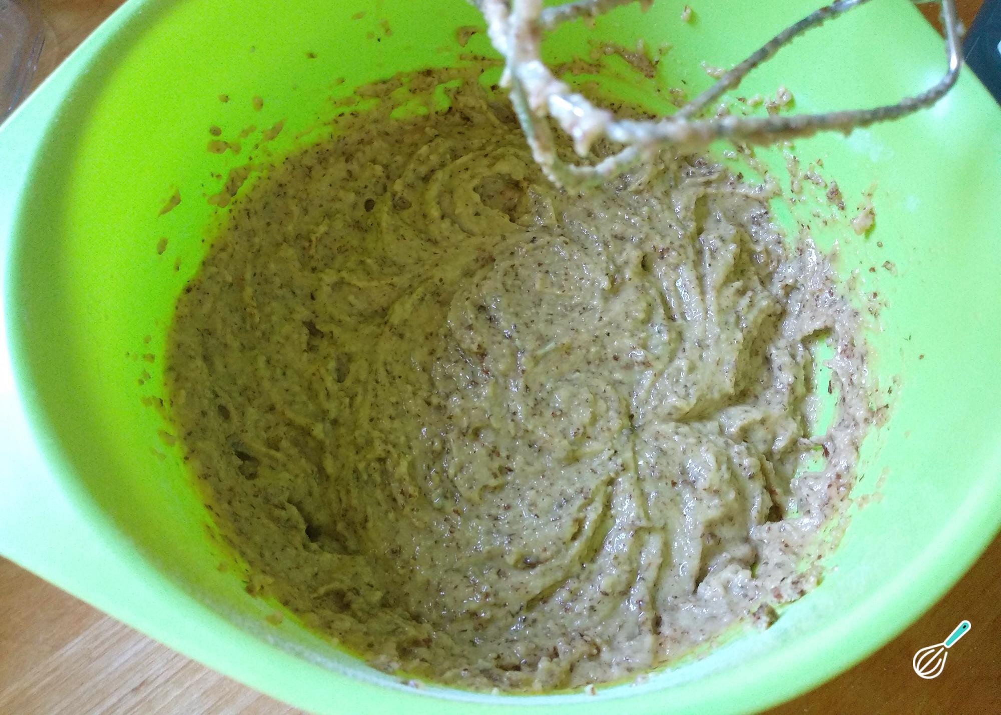 Enquanto isso prepare o creme de amêndoas, também chamado de creme frangipane. Coloque a farinha de amêndoas, o açúcar, os ovos e a essência de baunilha num bowl e bata até ficar cremoso.