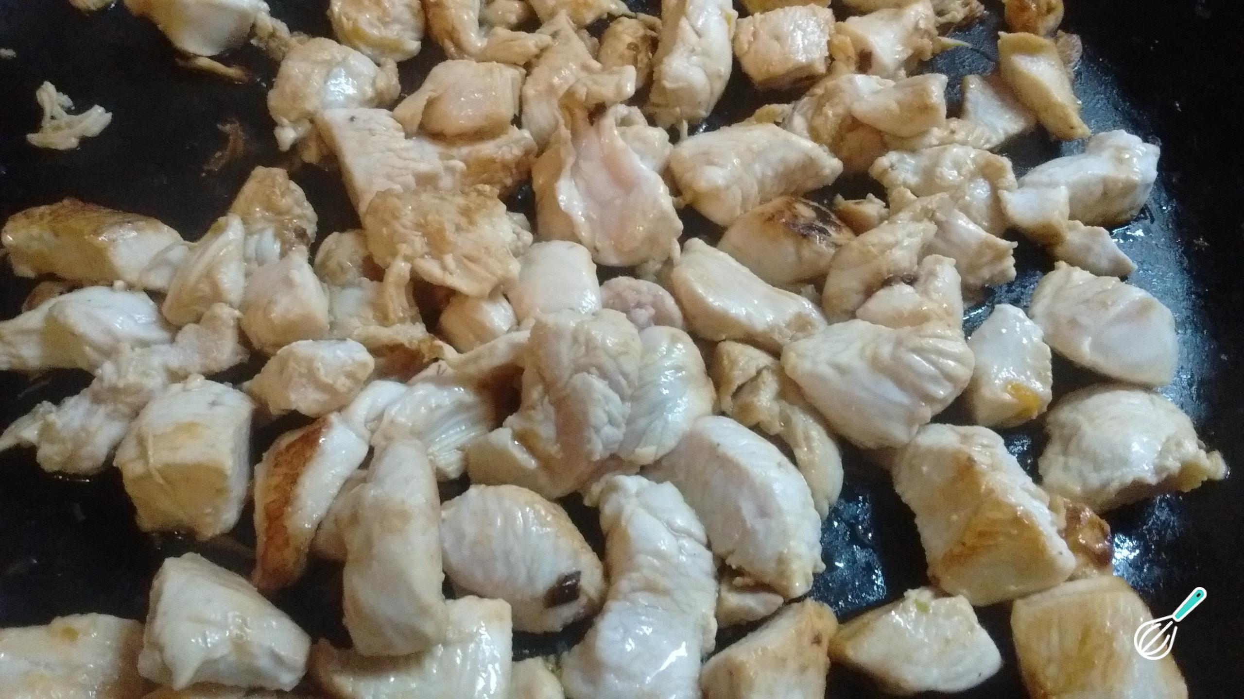 - Você não precisa necessariamente usar o peito de frango, você pode prepará-lo com a parte de frango que preferir. E, claro, você pode usar o frango já pronto que sobrou de outra refeição.