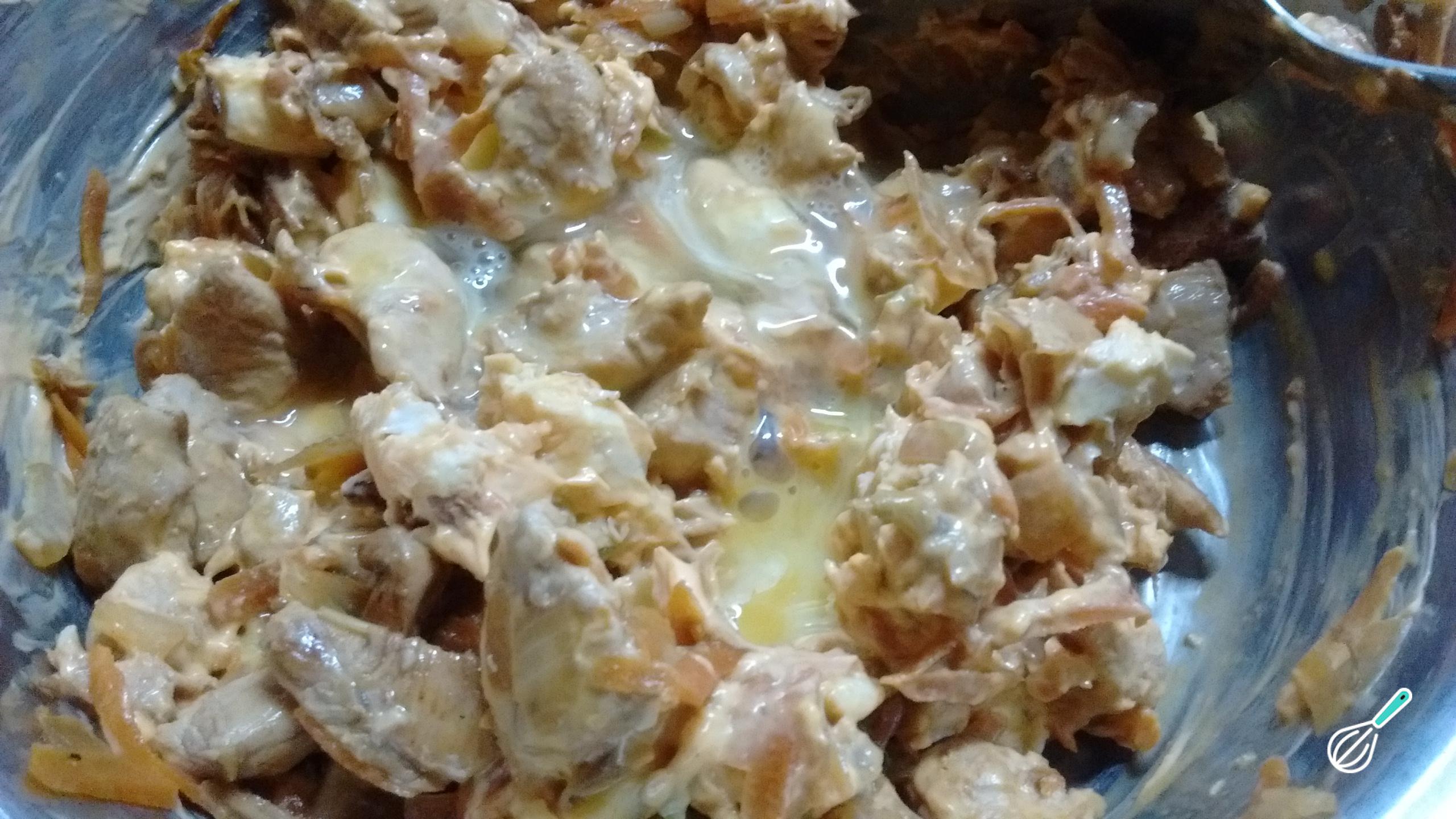 Prove o sabor e, se necessário, acerte o sal e a pimenta. Quando estiver a gosto, bata levemente o ovo e acrescente ao preparado .