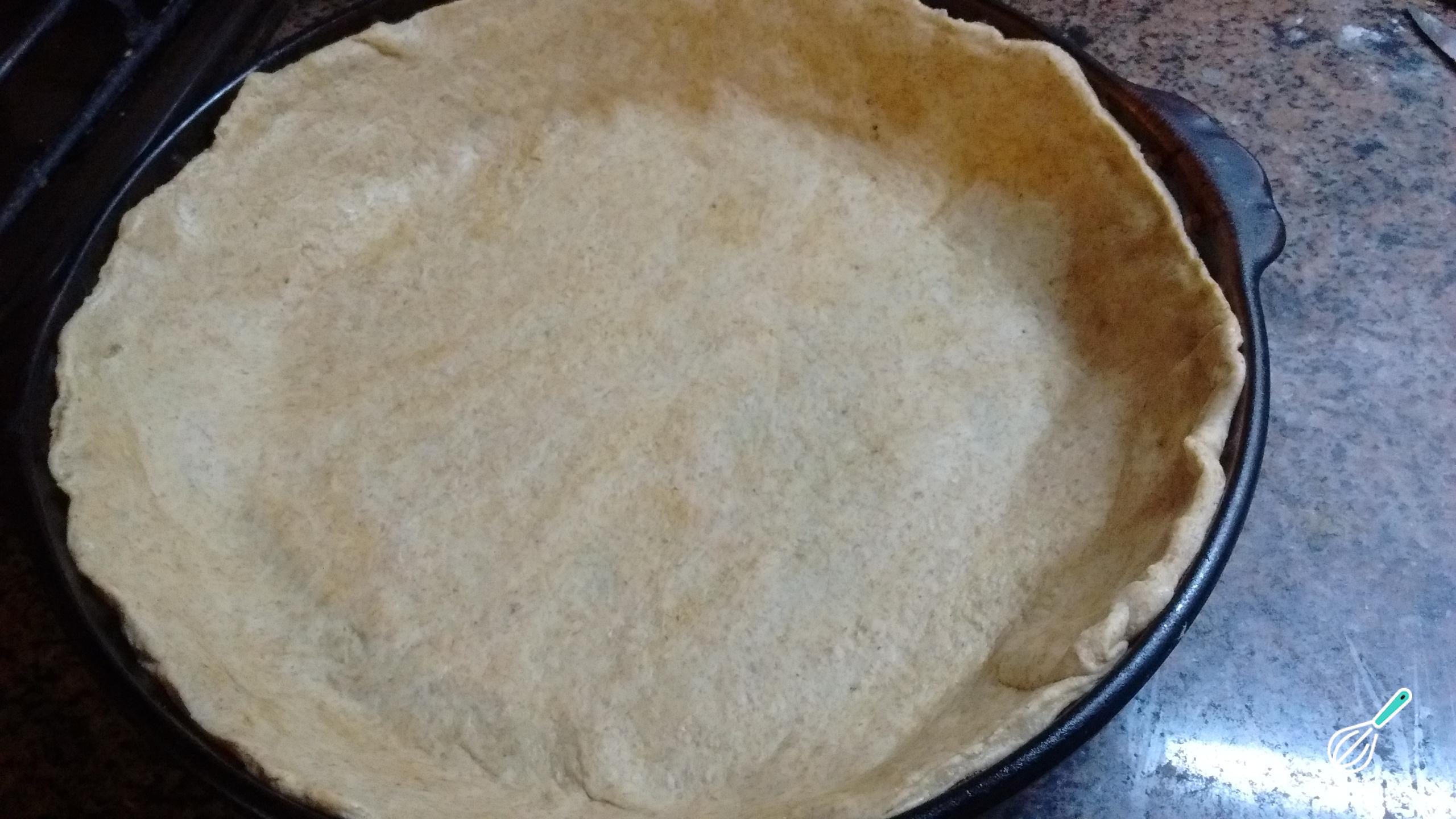Preaqueça o forno a 180 ºC e forre a forma com o disco de massa para torta.