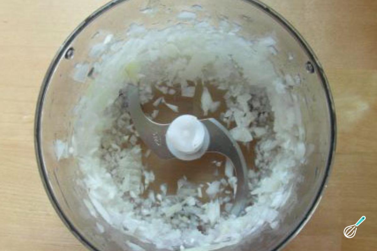 Em seguida, prepare os temperos que vão realçar o sabor do recheio da sua torta de massa podre. Pique a cebola e o alho bem fininhos. Você pode usar um processador de alimentos para agilizar o processo e obter uma textura homogênea, ou, se preferir, utilizar uma faca afiada para cortar manualmente em cubinhos pequenos. Quanto mais delicados ficarem os pedaços, melhor eles se misturam ao refogado, deixando a massa podre para torta com um aroma irresistível e o recheio bem saboroso.