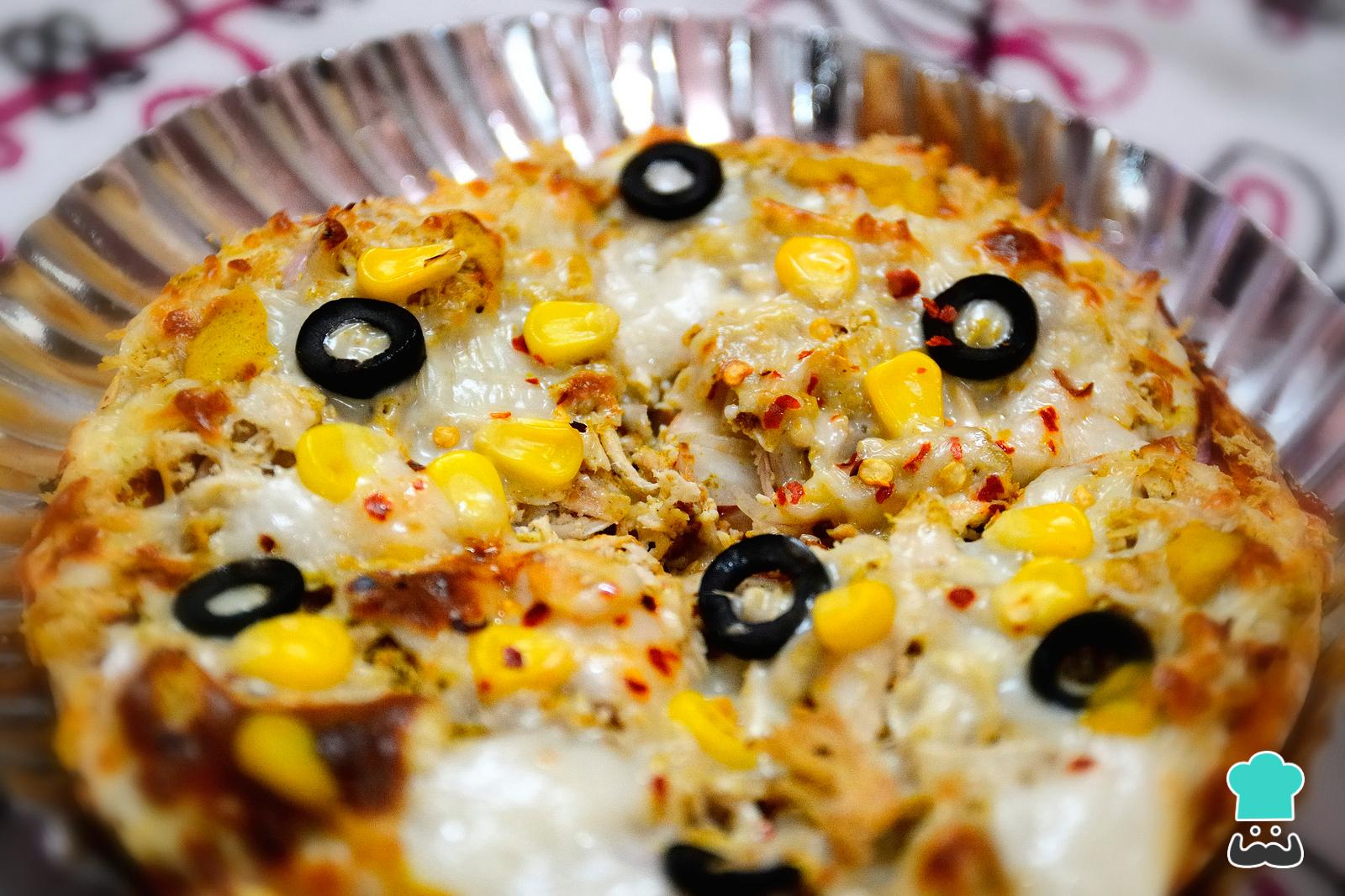Após o tempo indicado vire a massa da torta e acrescente o recheio de frango. Complete com requeijão, pimenta calabresa e, se quiser, mais azeitonas e milho. Tampe e espere o requeijão derreter.