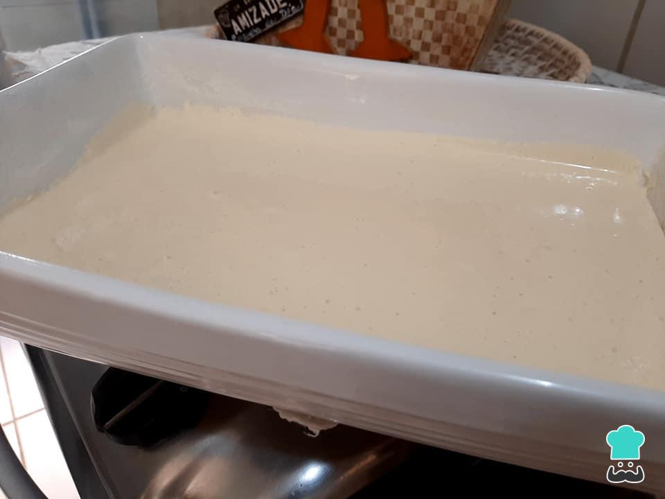 Cubra com o restante da massa, espalhando-a com o auxílio de uma espátula.