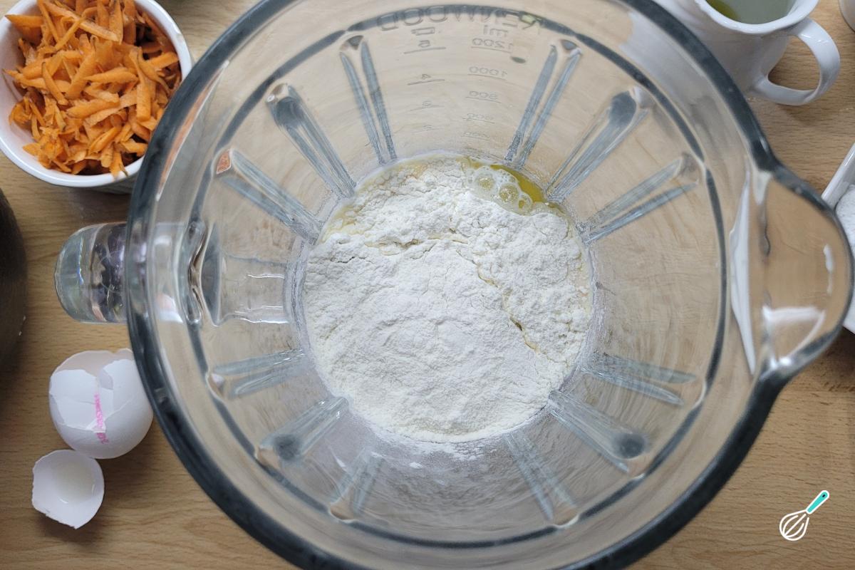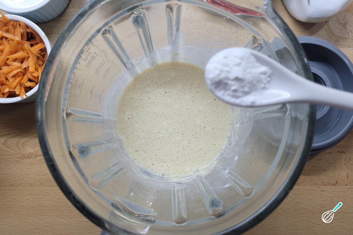 Por último, coloque o fermento e bata apenas até misturar. O fermento deve ser colocado por último para evitar bater demais.