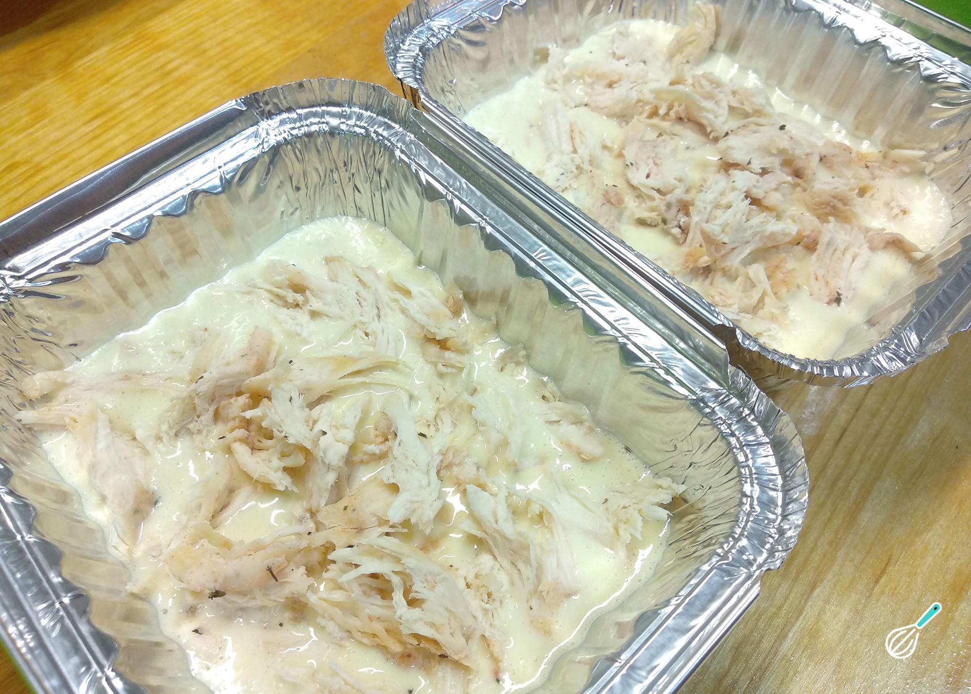 Leve a torta de frango na marmita ao forno a 160ºC por 20-30 minutos ou até dourar e está pronta! Deixe esfriar completamente para tampar. Pode congelar (sem a tampa de cartão) ou vender em seguida. Bom trabalho!