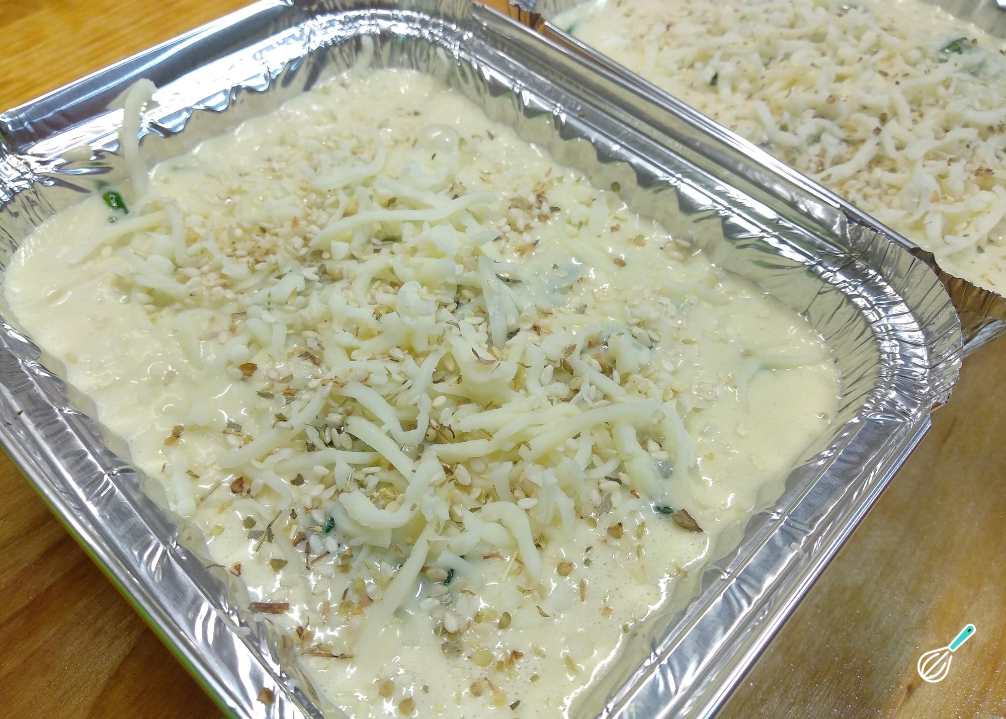 Distribua metade da massa pelas marmitas (a quantidade indicada rende 4 marmitas de 250 ml), sem precisar untar.
