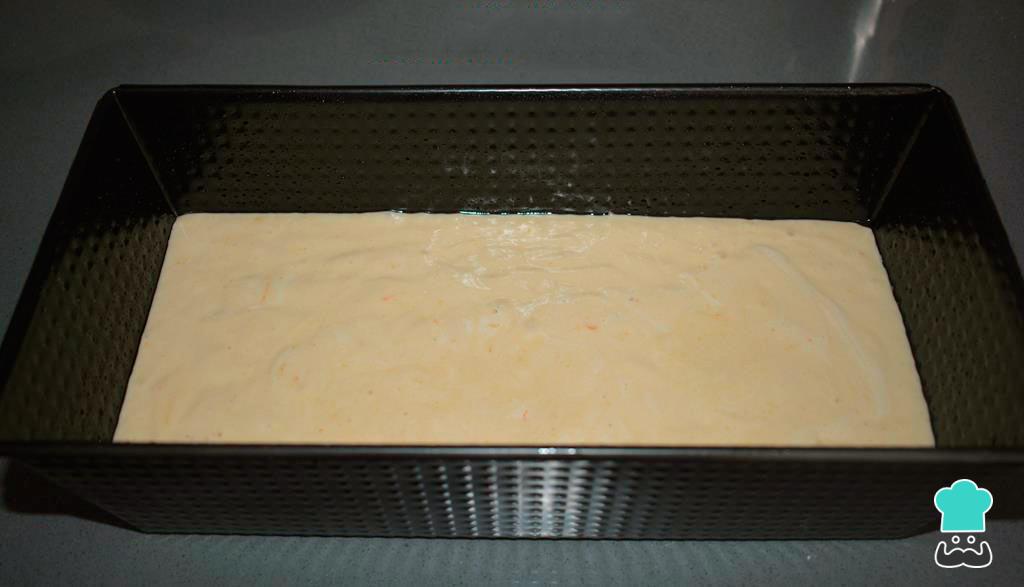Coloque a massa numa forma retangular e leve a assar em banho-maria no forno pré-aquecido a 220°C.