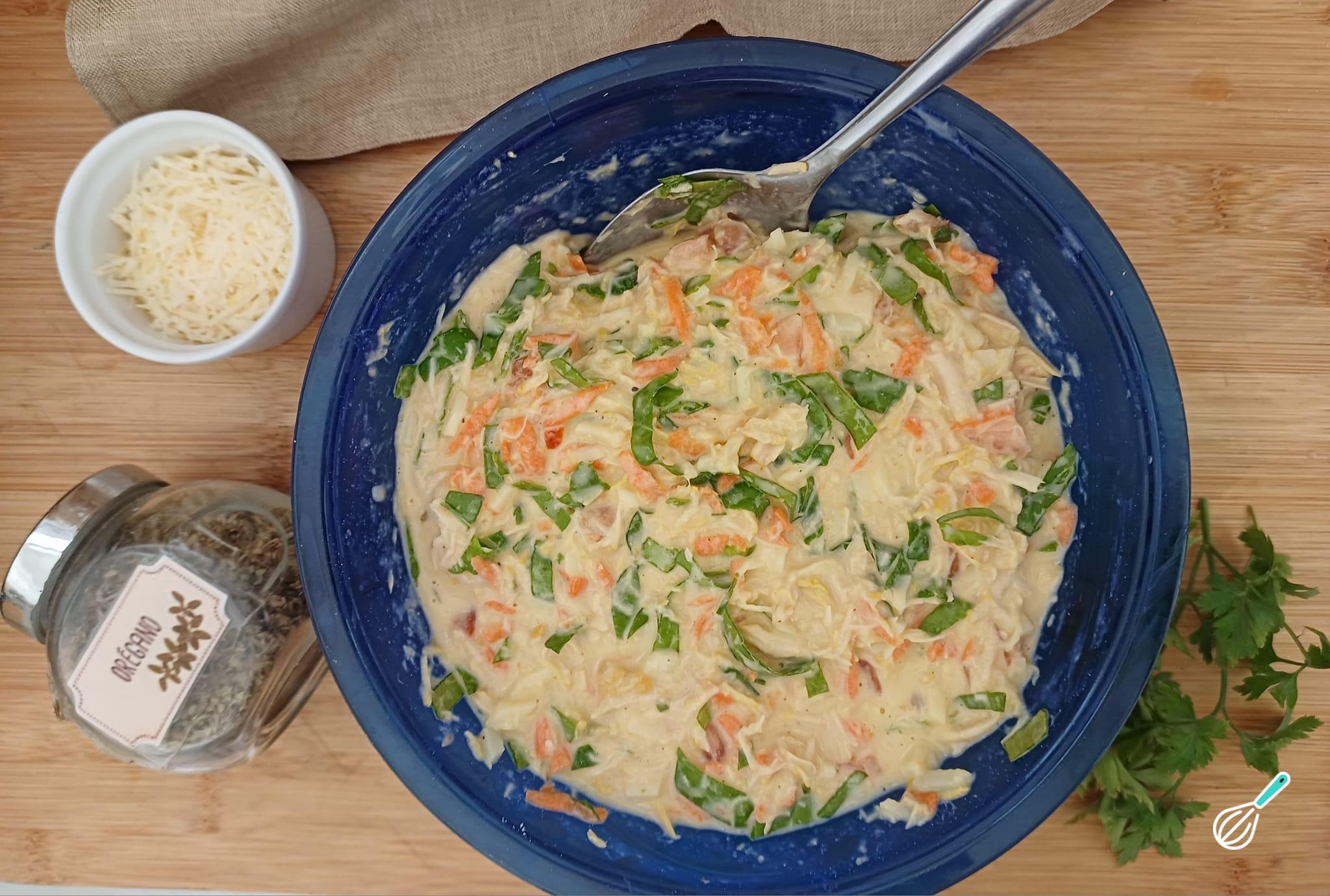 Para esta receita, usaremos goma de tapioca, ovos e requeijão cremoso, proporcionando uma torta leve e bem saborosa que junto com os legumes e o frango cozido e desfiado poderá ser servida como prato principal!