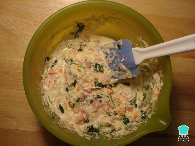 Para fazer esta torta salgada vegetariana, comece por preparar a massa: misture os ingredientes respetivos em uma tigela, até obter uma massa compacta, como a massa podre.