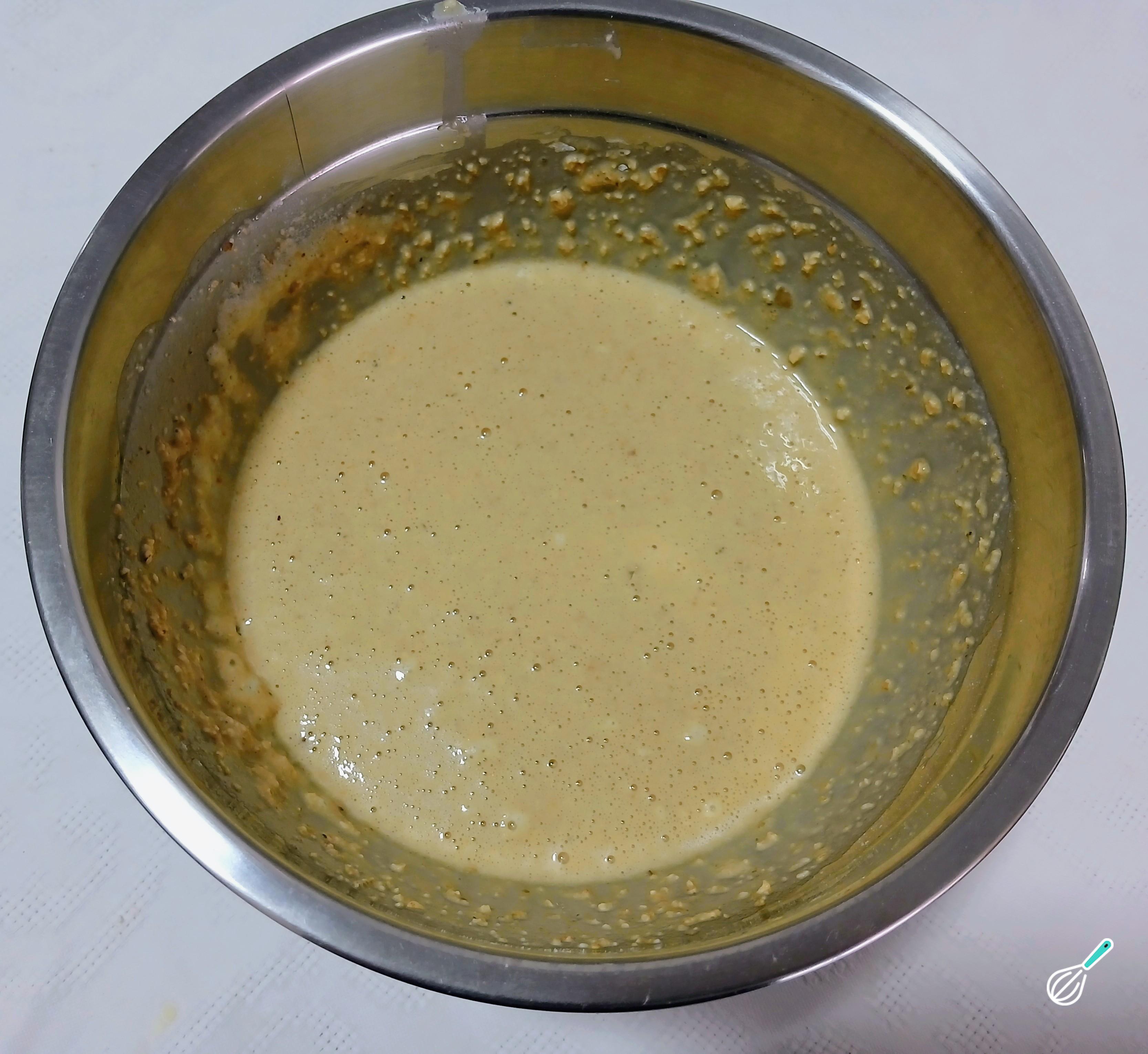 Depois de misturar bem os ingredientes líquidos, adicione a farinha de aveia e o amido de milho. Adicione também o alho e cebola em pó.