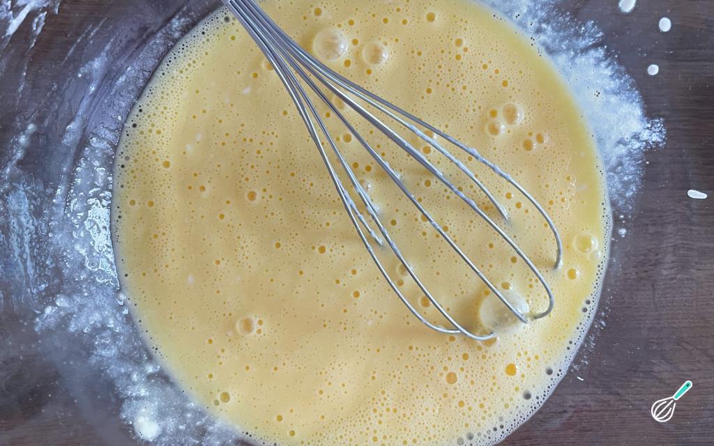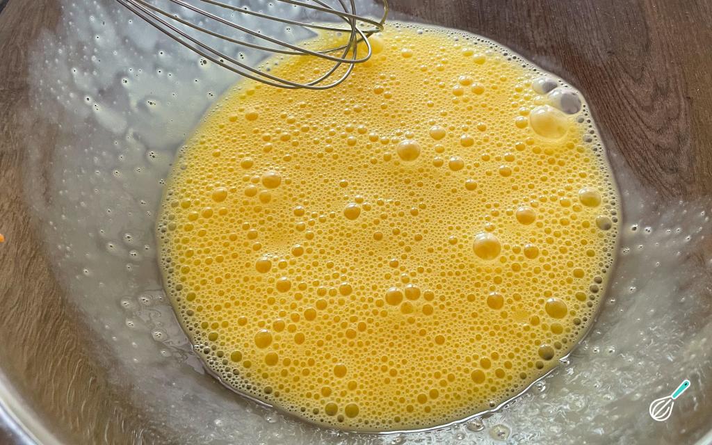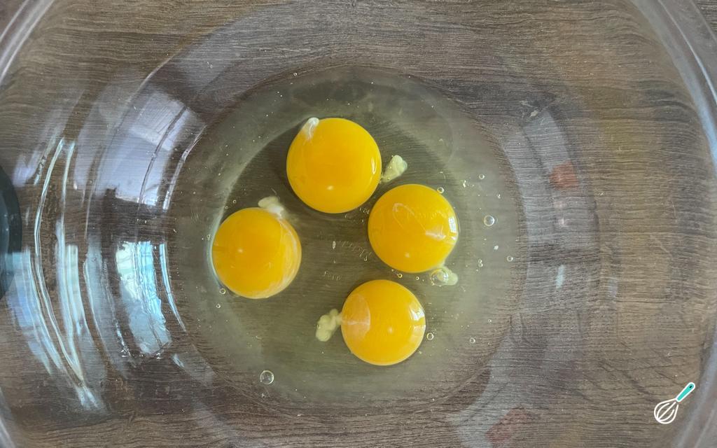 O primeiro passo para fazer a sua Torta de legumes no forno é colocar os ovos numa tigela.