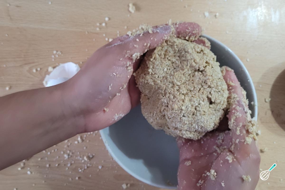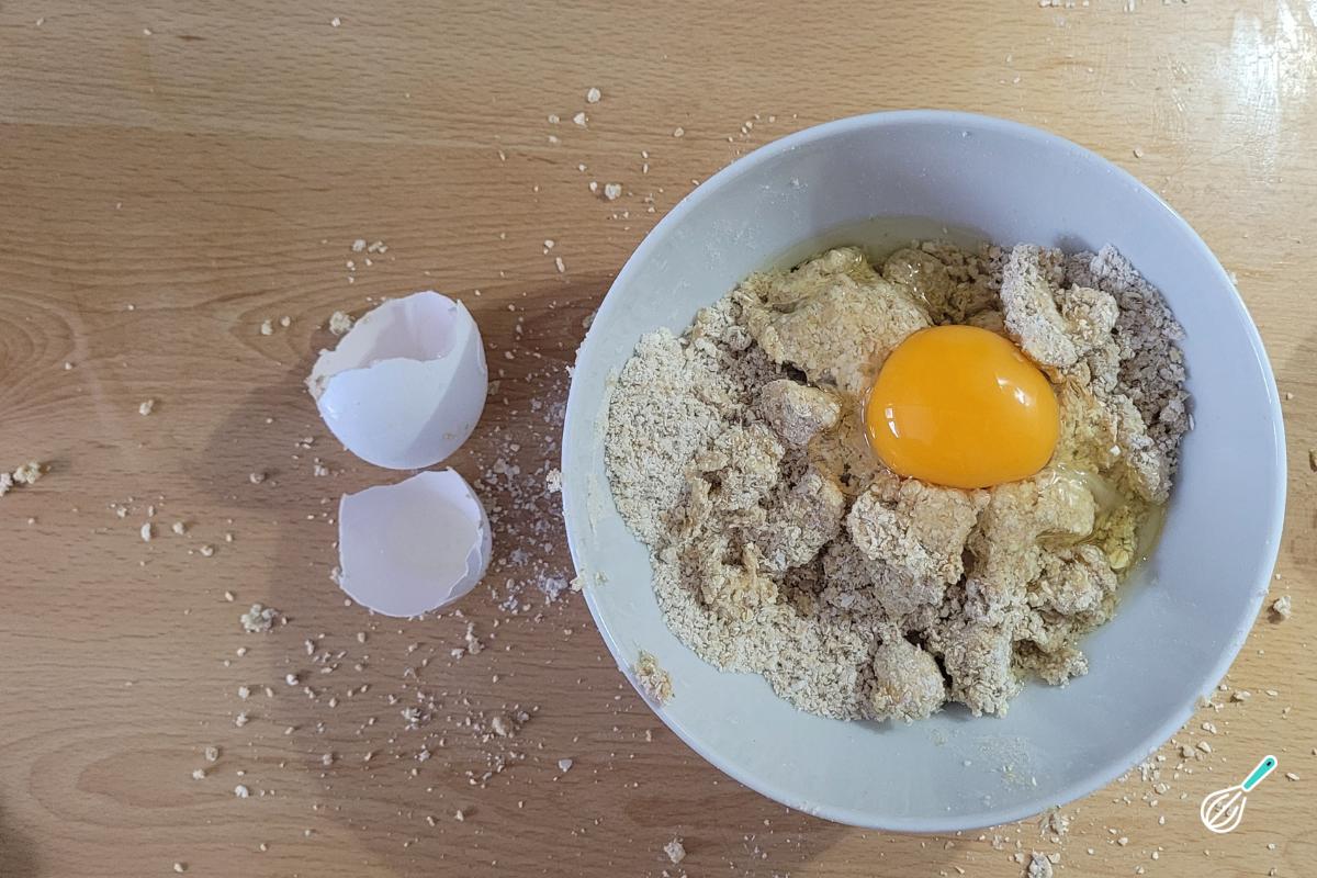 Se preferir, pode substituir por óleo de coco, mas ele também não deve estar líquido ao entrar na massa. É possível dar a liga na massa apenas com água, sem usar o ovo, mas como a massa não tem glúten, o ovo facilita na liga.