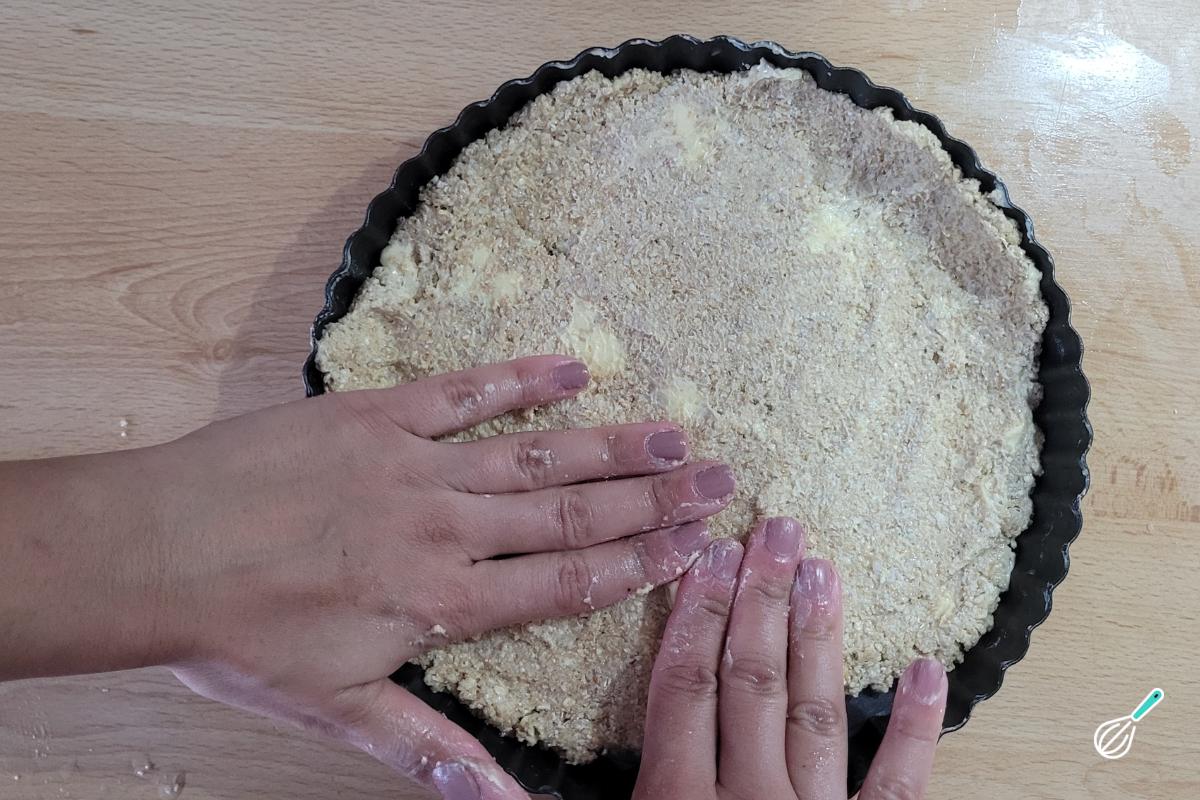 Espalhe a massa com as mãos na forma de forma homogênea.