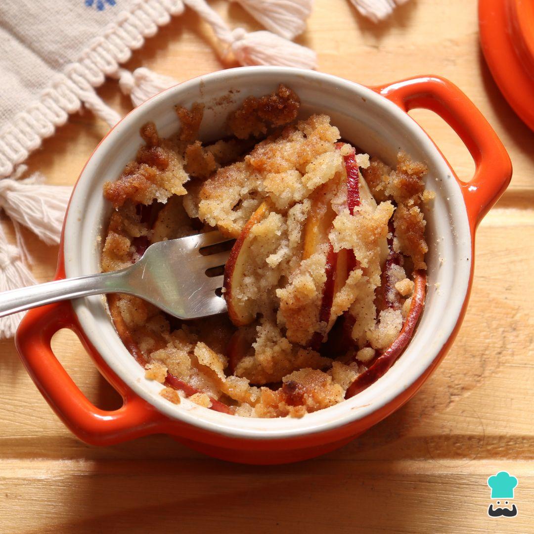 A combinação de maçã e canela dessa torta é simplesmente deliciosa. O preparo é super fácil e a receita fica pronta em menos de 30 minutos. Ah! Essa é uma porção individual mas você pode preparar para mais pessoas; é só dobrar a quantidade de ingredientes.