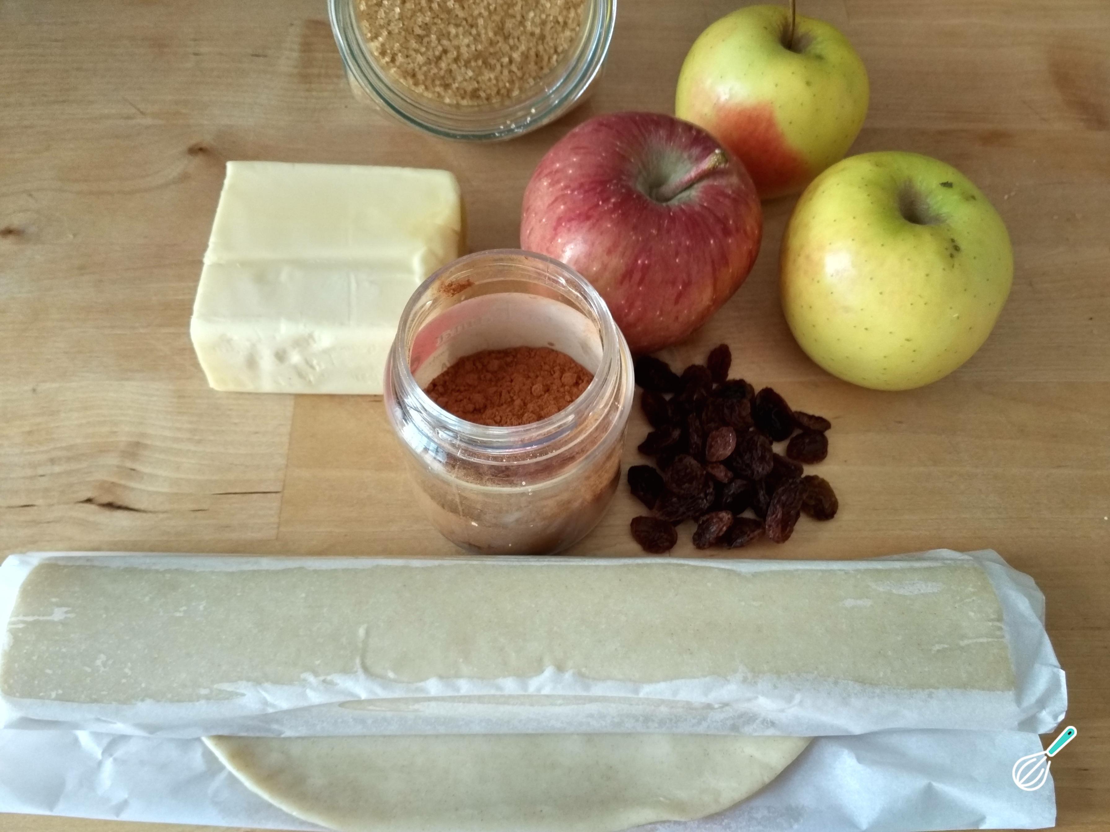 Para começar esta receita de torta de maçã, junte todos os ingredientes necessários.