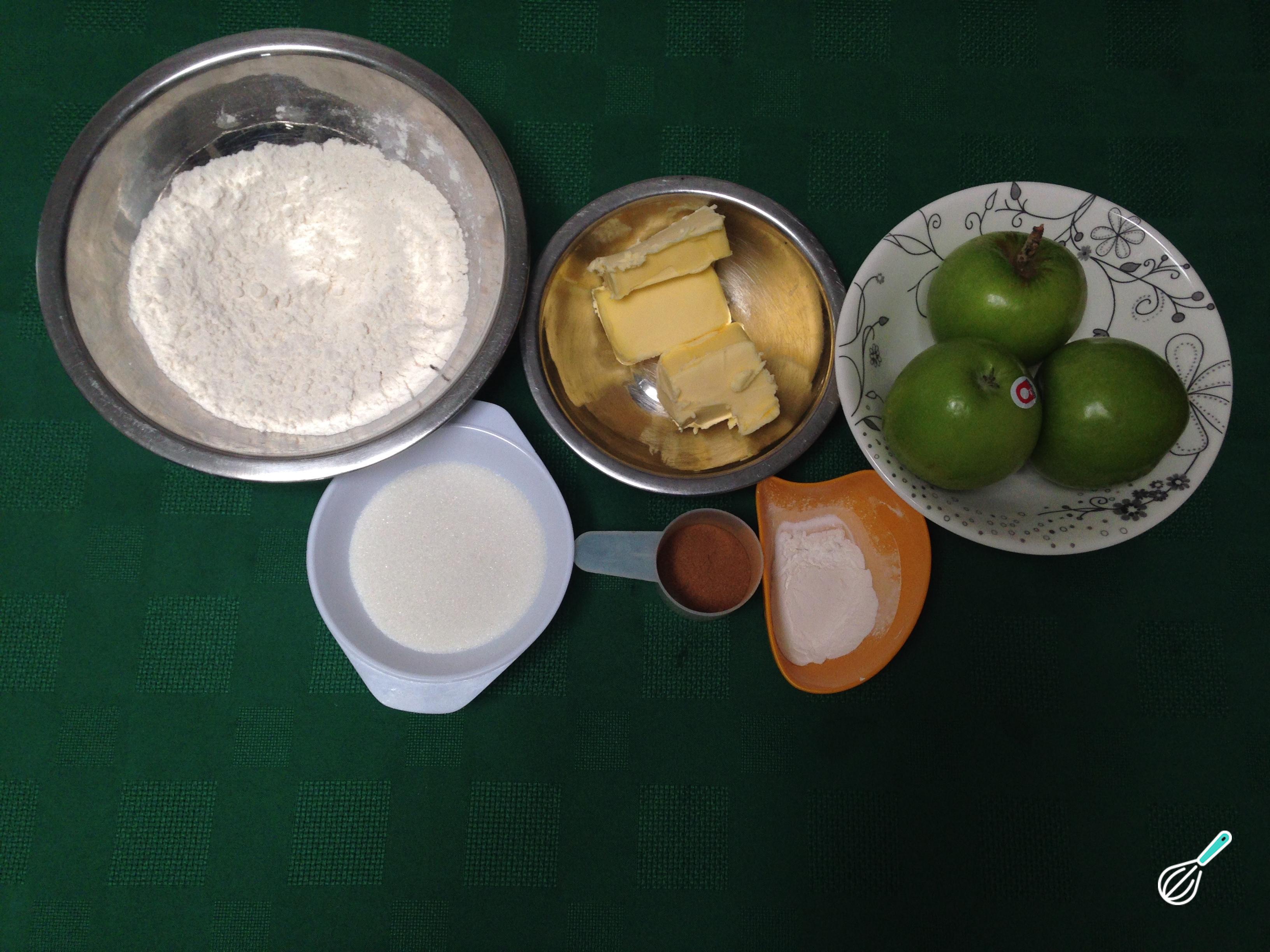 Para preparar esta deliciosa torta de maçã americana, o primeiro passo consiste em reunir os ingredientes necessários.