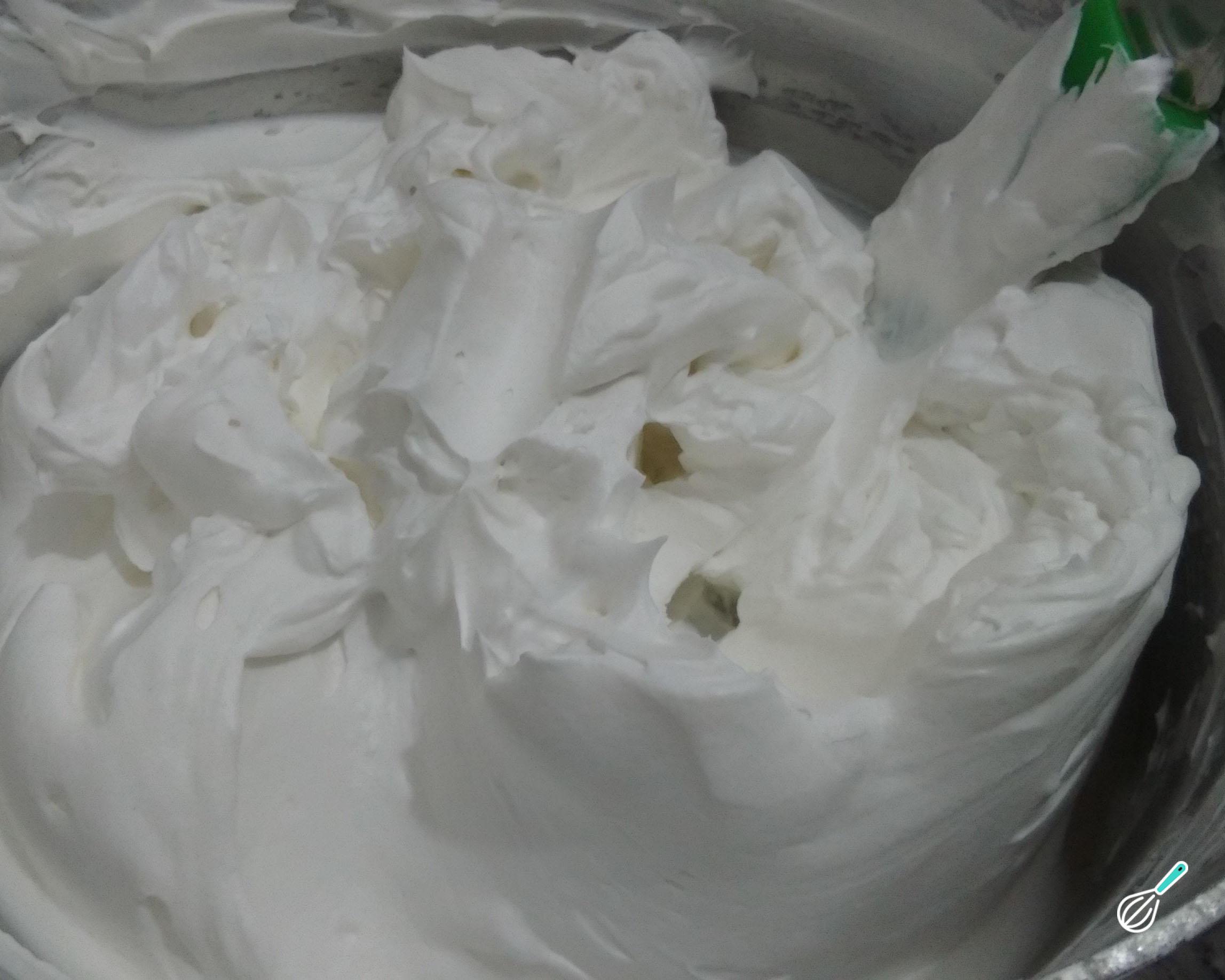 Bata por mais alguns minutos, até ficar firme como na fotografia. Não bata demasiado para que não vire manteiga.