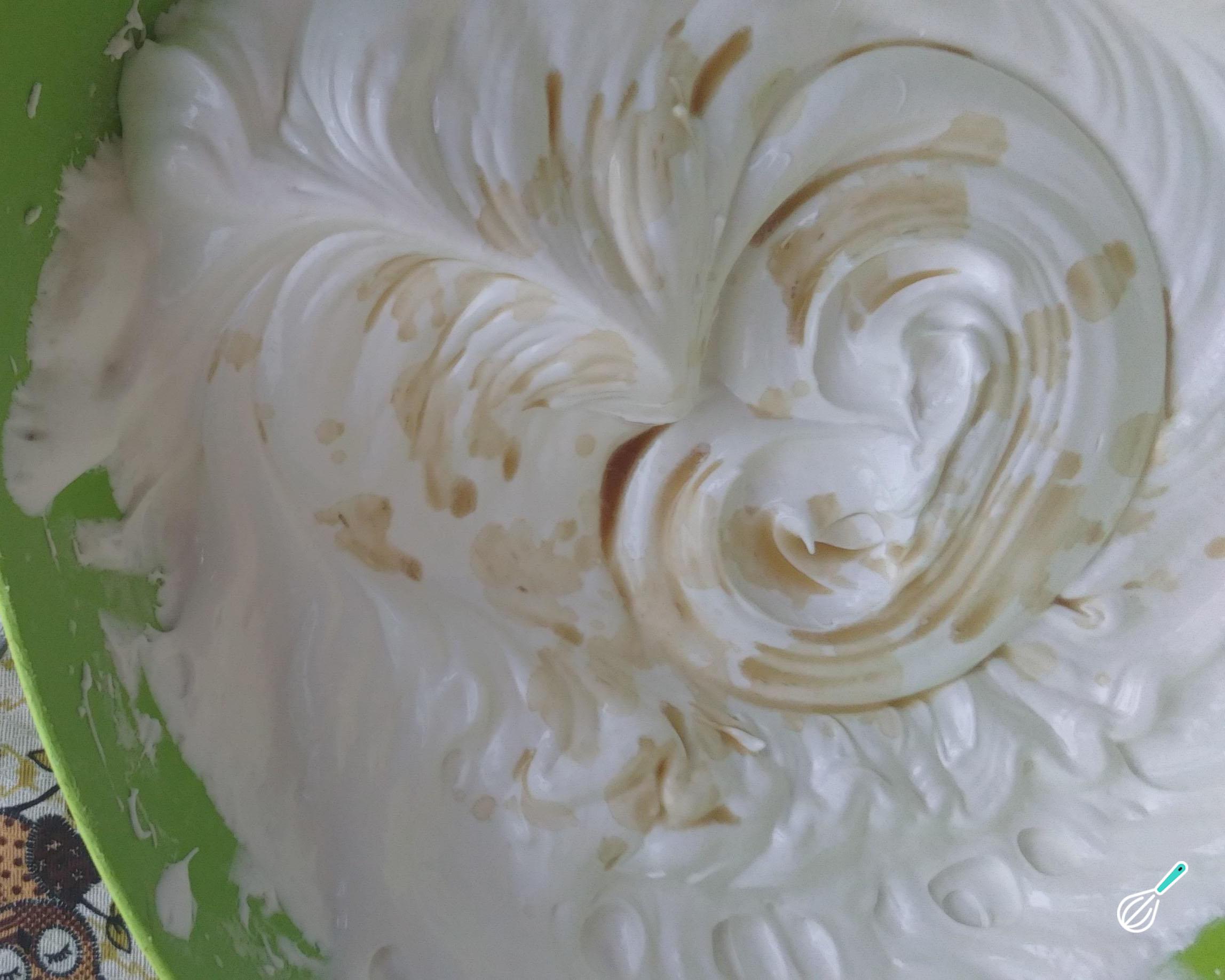 Neste momento você deverá ter um merengue bem brilhante e consistente, que não escorre da tigela. É hora de adicionar a essência de baunilha e suco de limão.