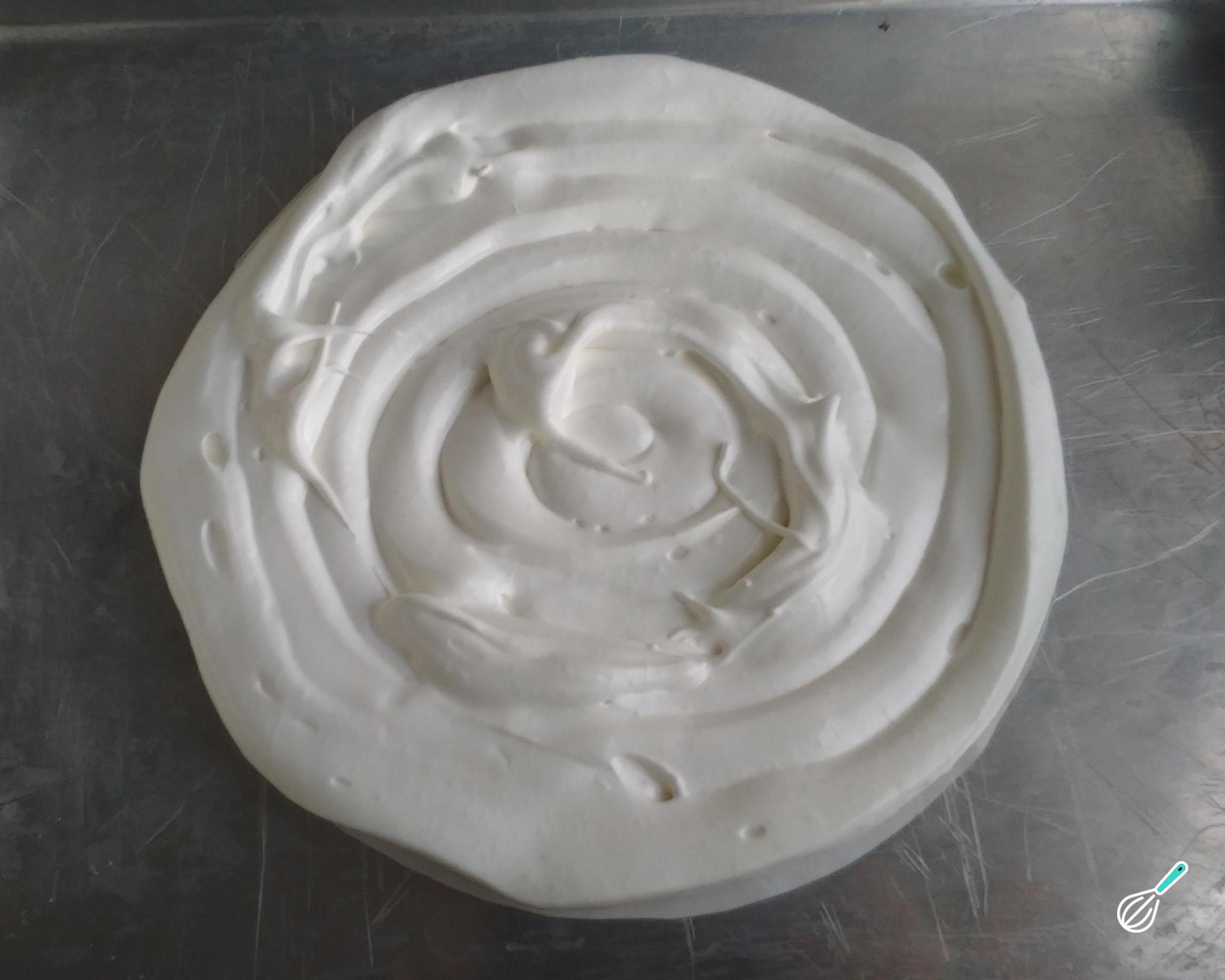 Cubra esse primeiro disco de merengue com um pouco de chantilly, espalhando bem.