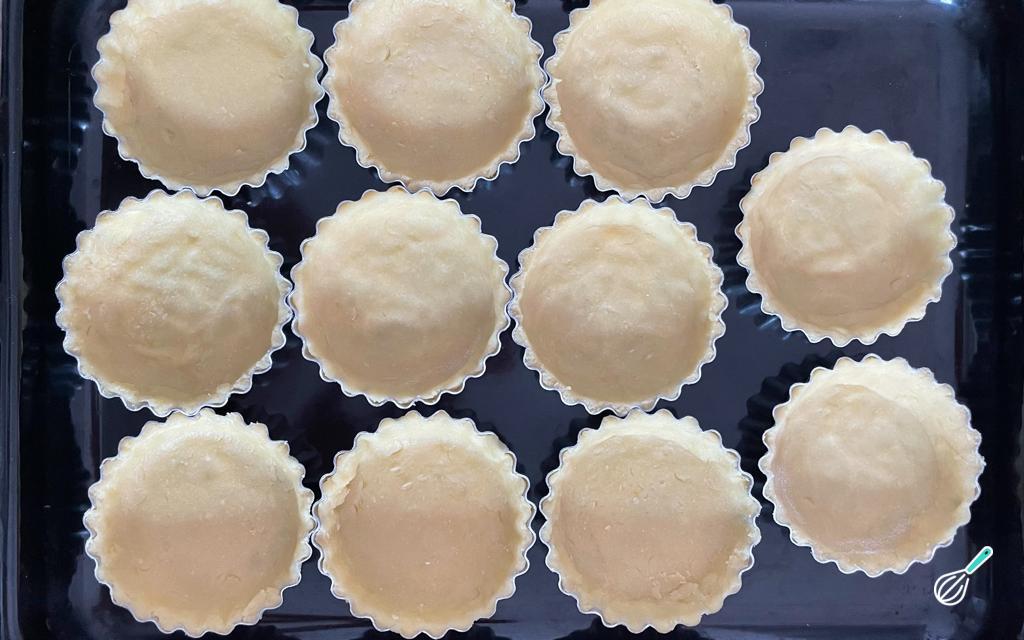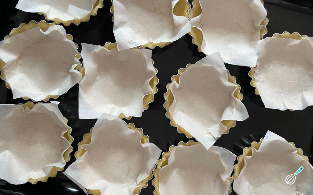 Cubra o fundo e as laterais das forminhas com a massa.