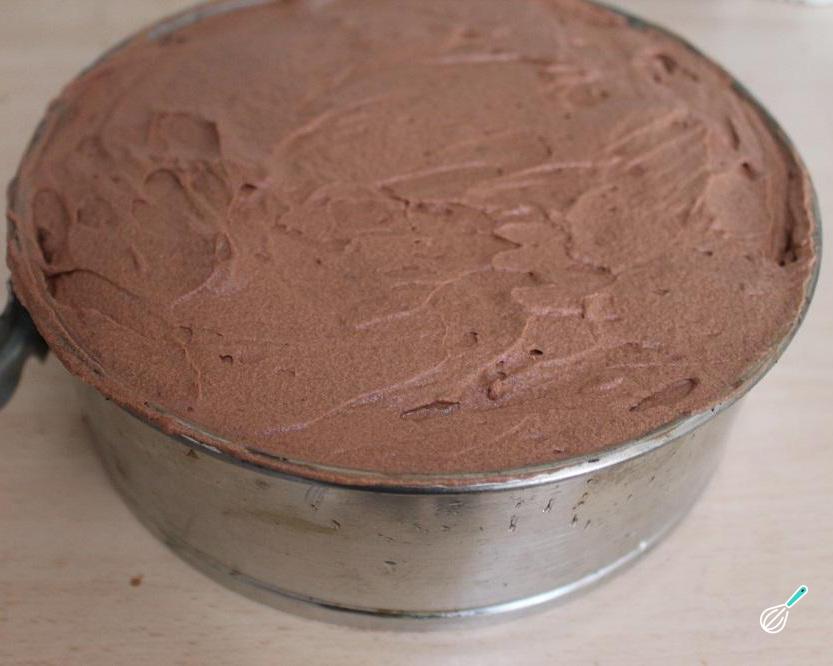Coloque esta massa de base de chocolate para torta numa forma de bolo untada e enfarinhada. Asse a 180ºC por 15 minutos ou até passar no teste do palito. Depois retire do forno e desenforme, para esfriar completamente.