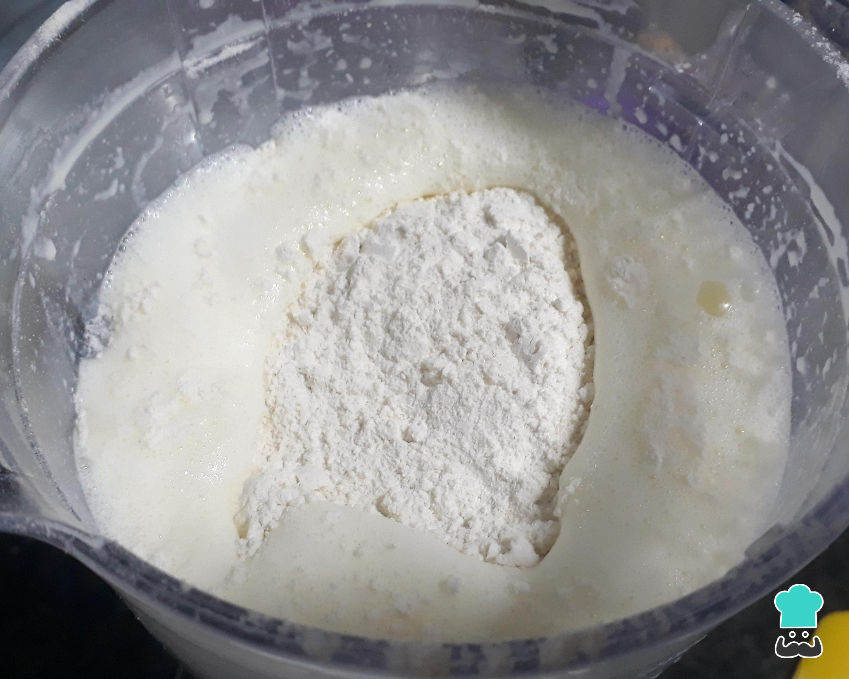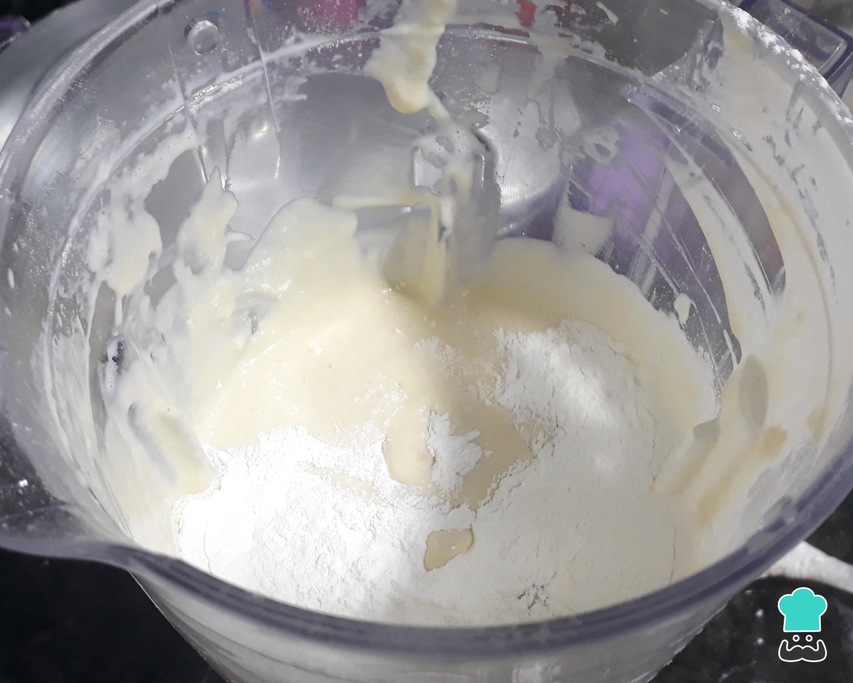 Acrescente a farinha de trigo e bata novamente até os ingredientes incorporarem.
