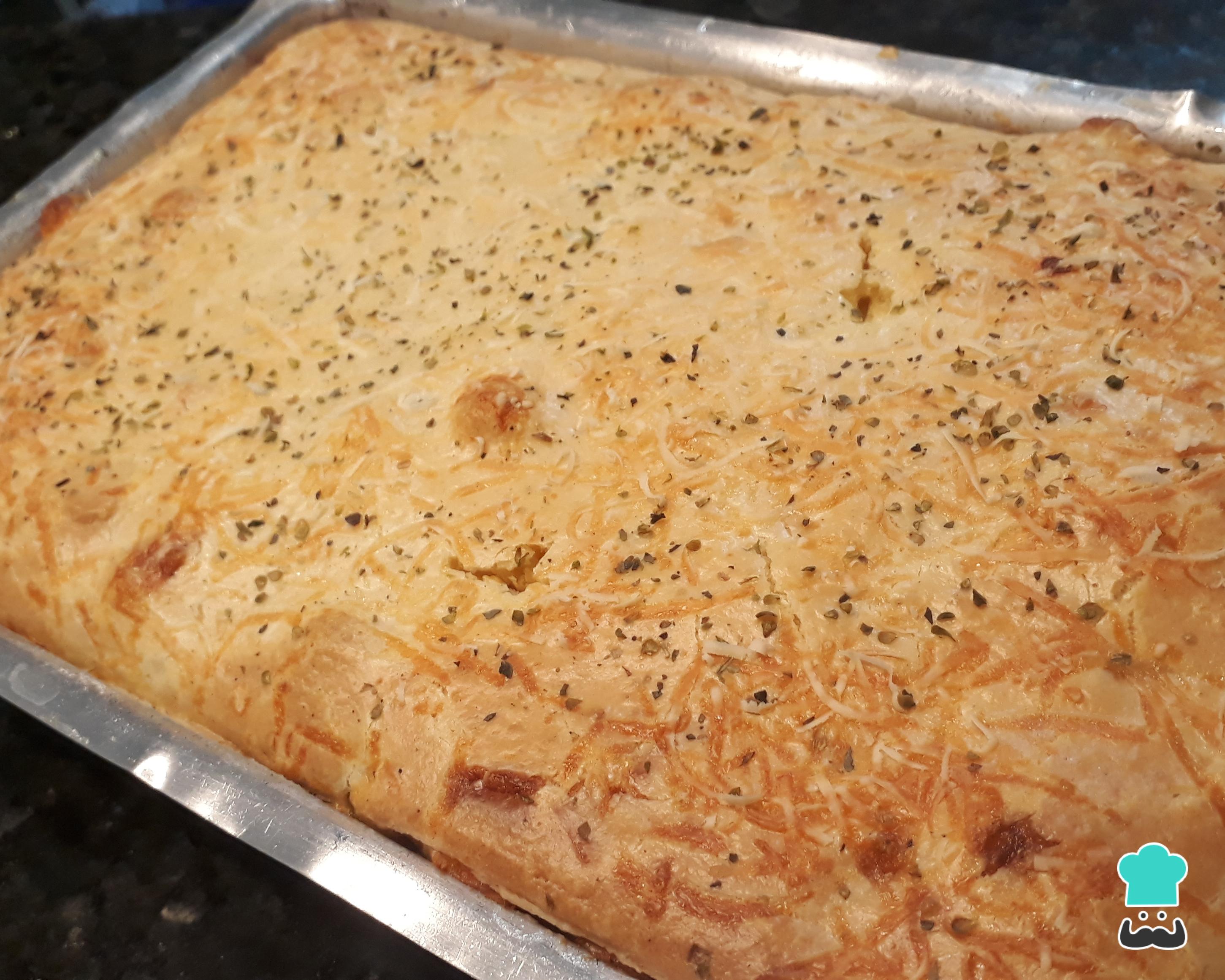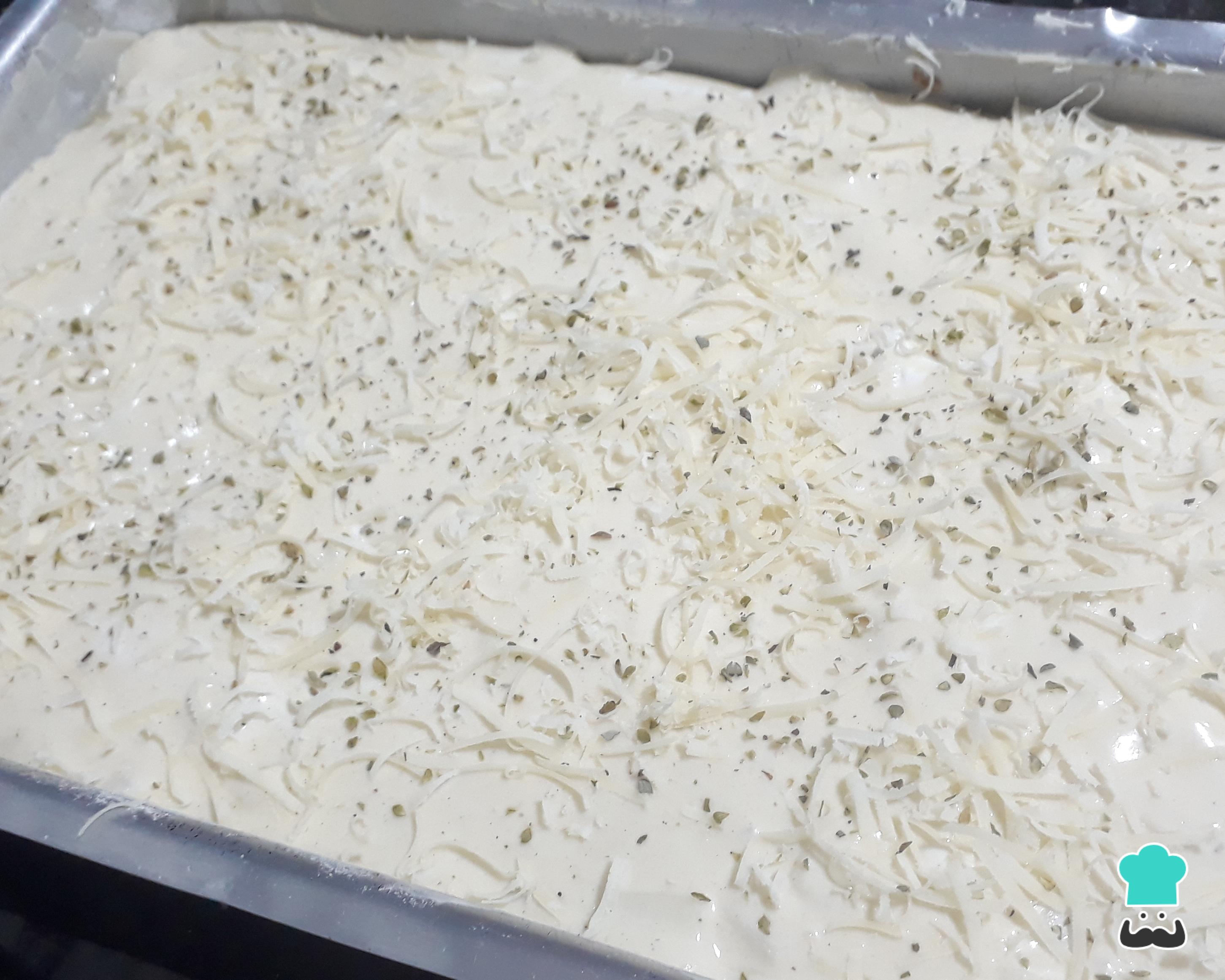Cubra com o restante da massa e polvilhe por cima parmesão fresco ralado e orégano. Leve ao forno pré-aquecido por 40 minutos em 180ºC, ou até que esteja bem dourada por cima.