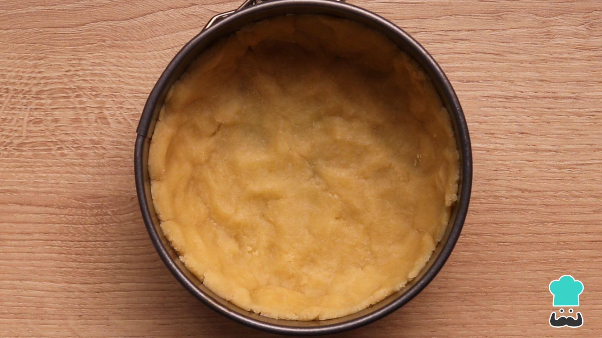 Passado o tempo de geladeira, abra a massa no fundo e nas laterais de uma assadeira com fundo falso.