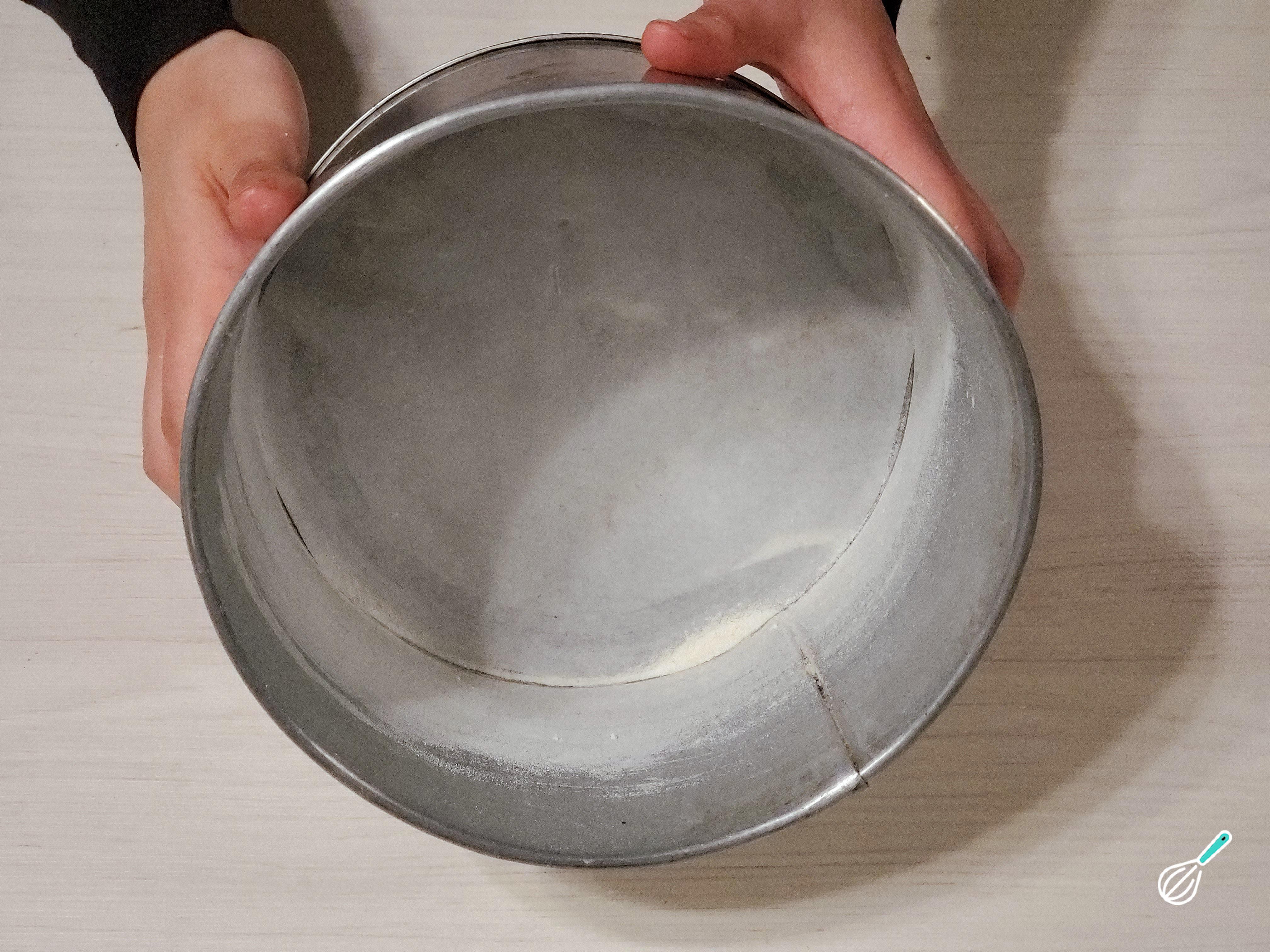 Unte com manteiga uma forma circular ou retangular de 19 cm. Corte o papel manteiga e coloque-o na base do molde. Para finalizar enfarinhe, retirando o excesso.