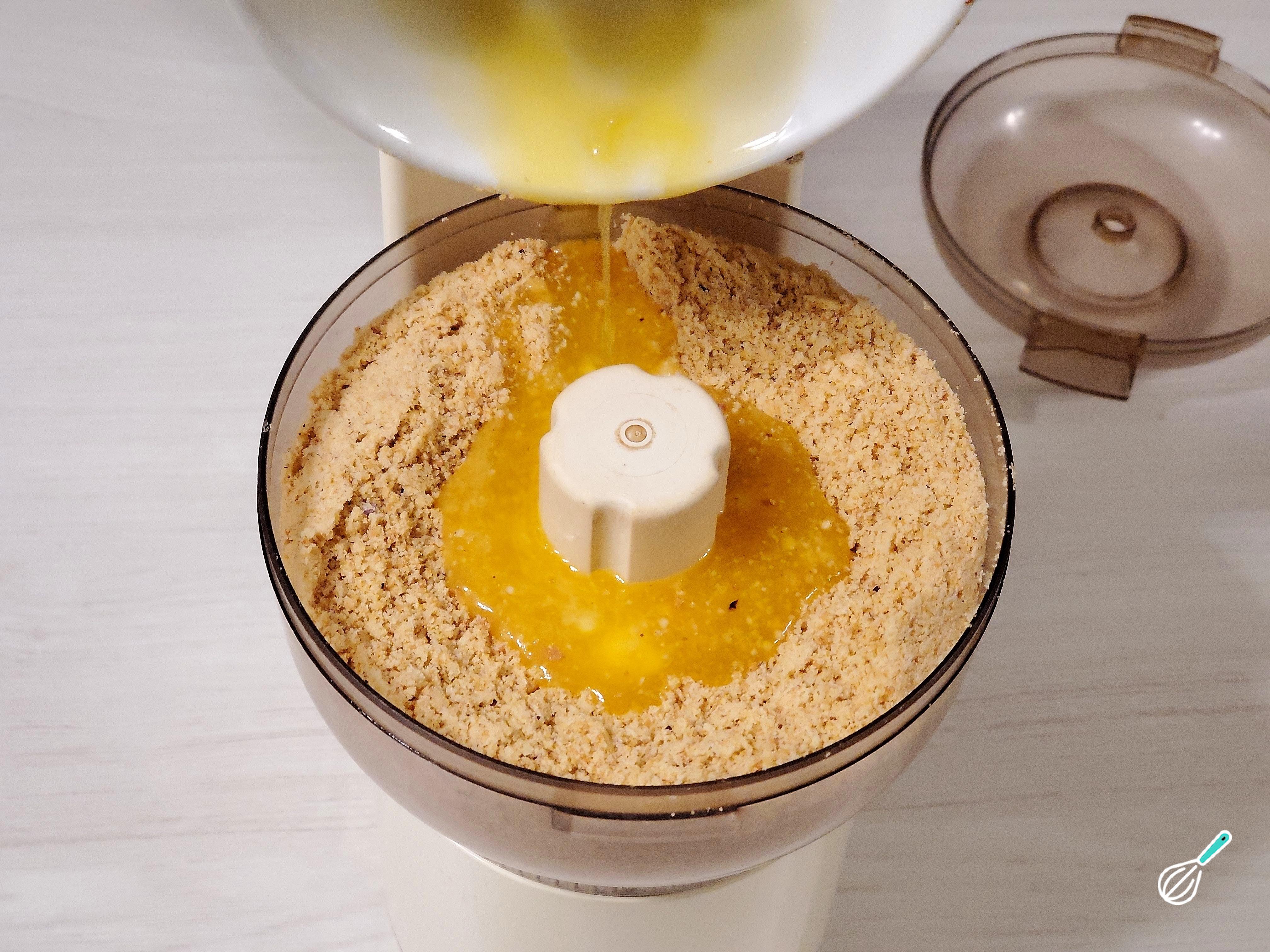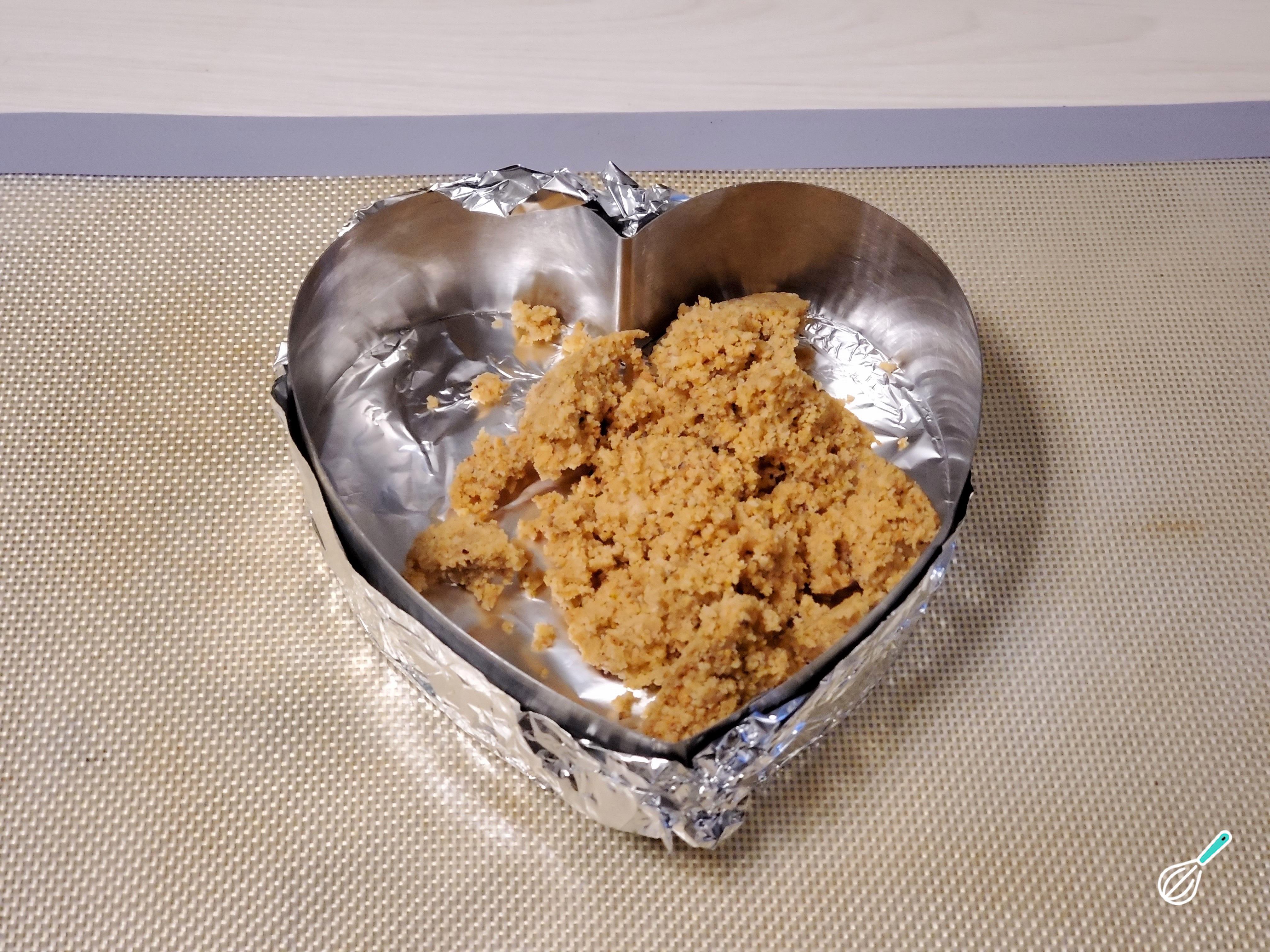 - Misture os biscoitos triturados com a manteiga derretida e pressione na base do molde.