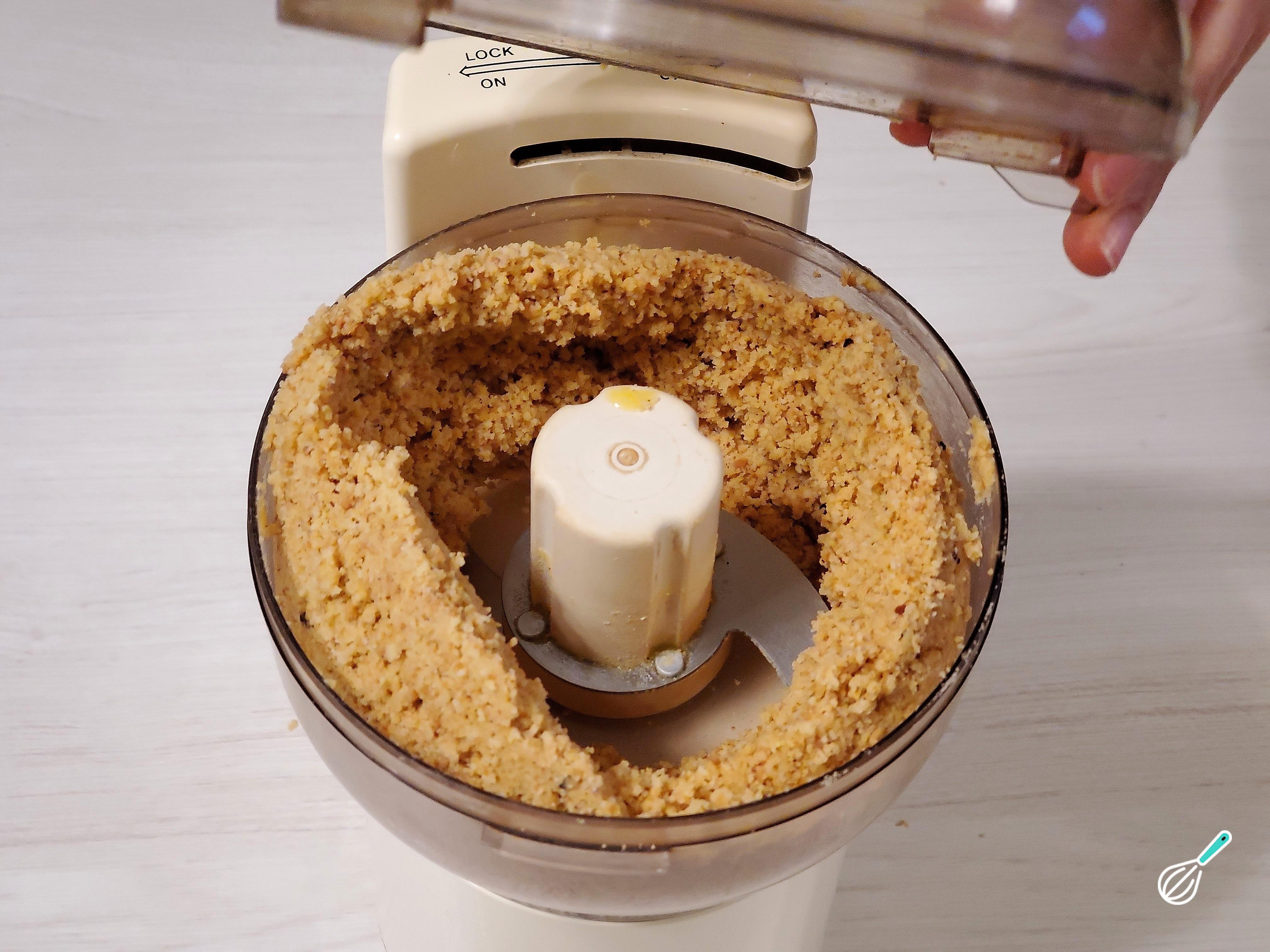 Continue processando e despeje sobre a massa de biscoito crocante.