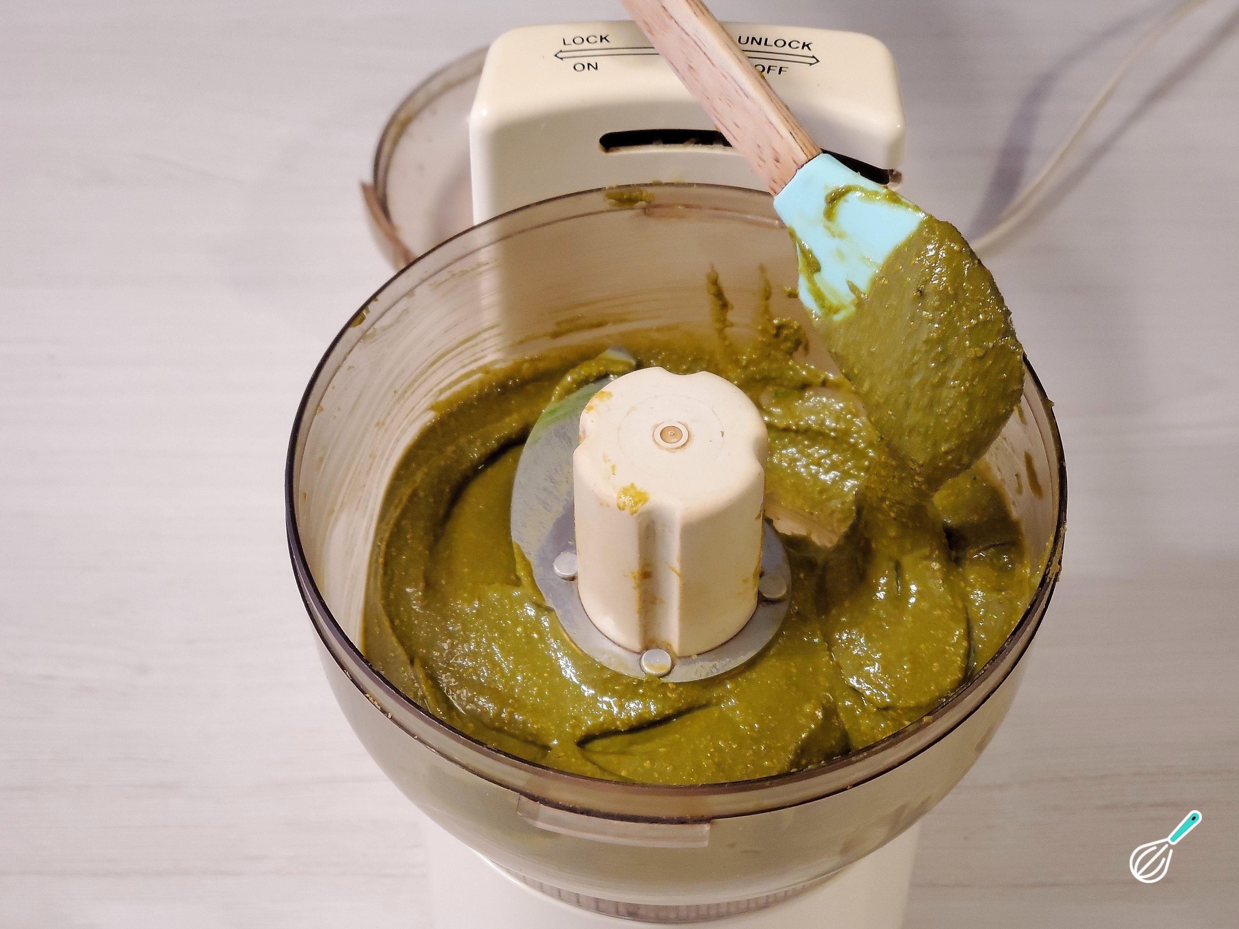 Processe-os até obter uma pasta lisa. Neste ponto, você pode adicionar gotas de corante alimentar se quiser uma cor verde ainda mais viva.