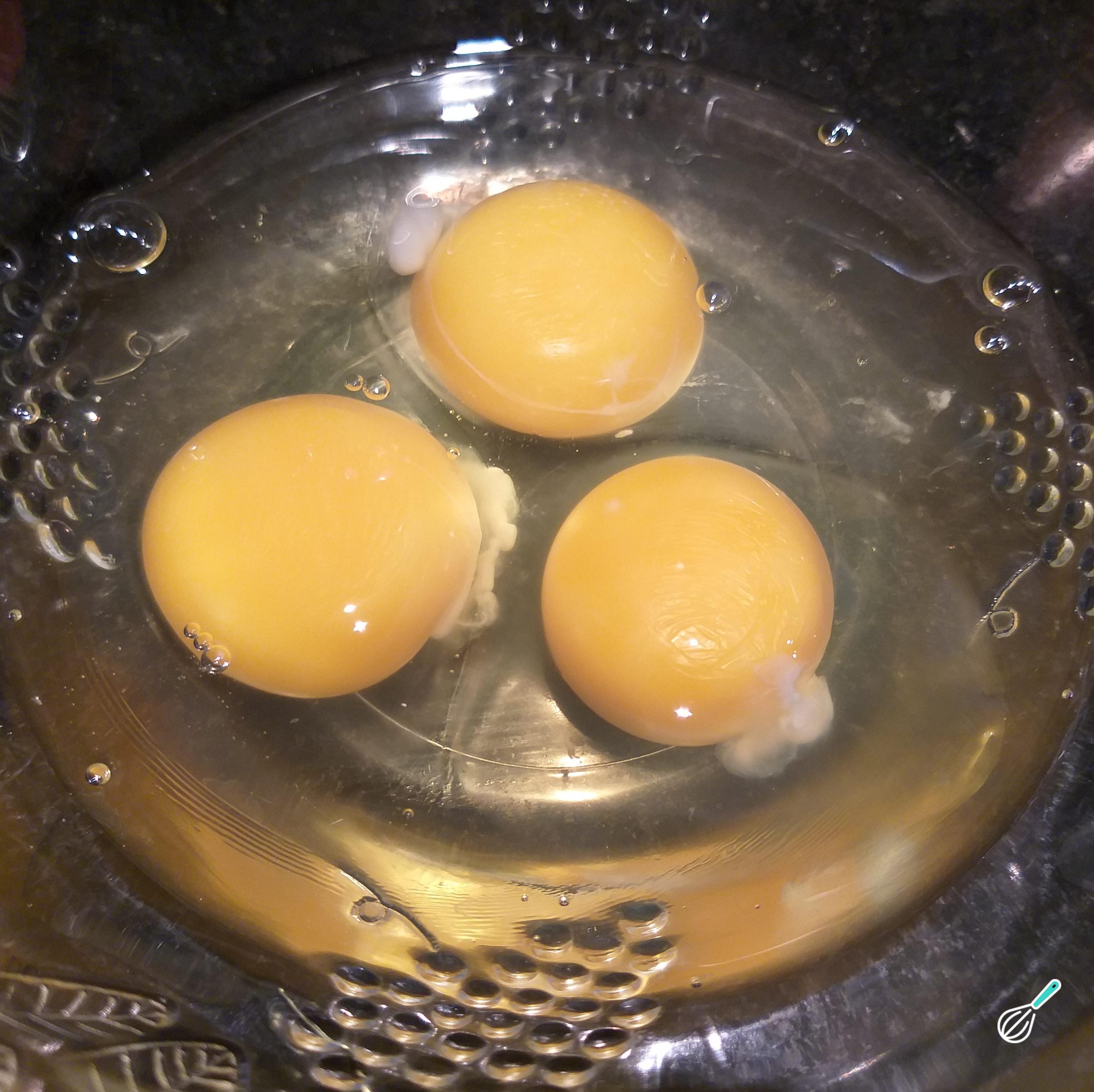Em uma vasilha bata ligeiramente os ovos com um garfo. Acrescente o leite, o sal e a farinha e misture delicadamente.